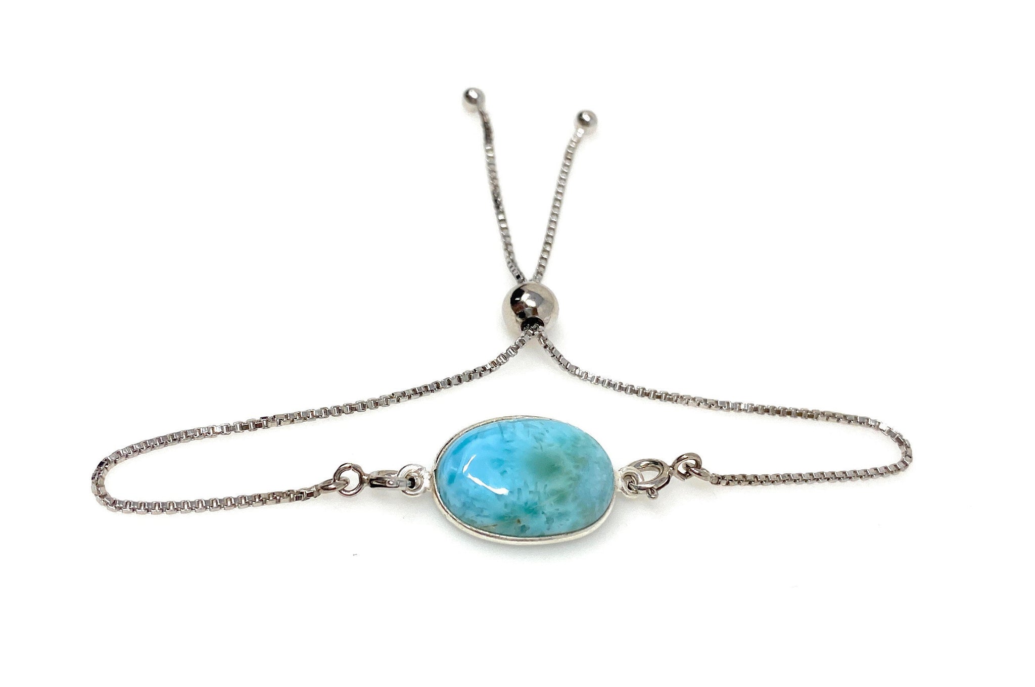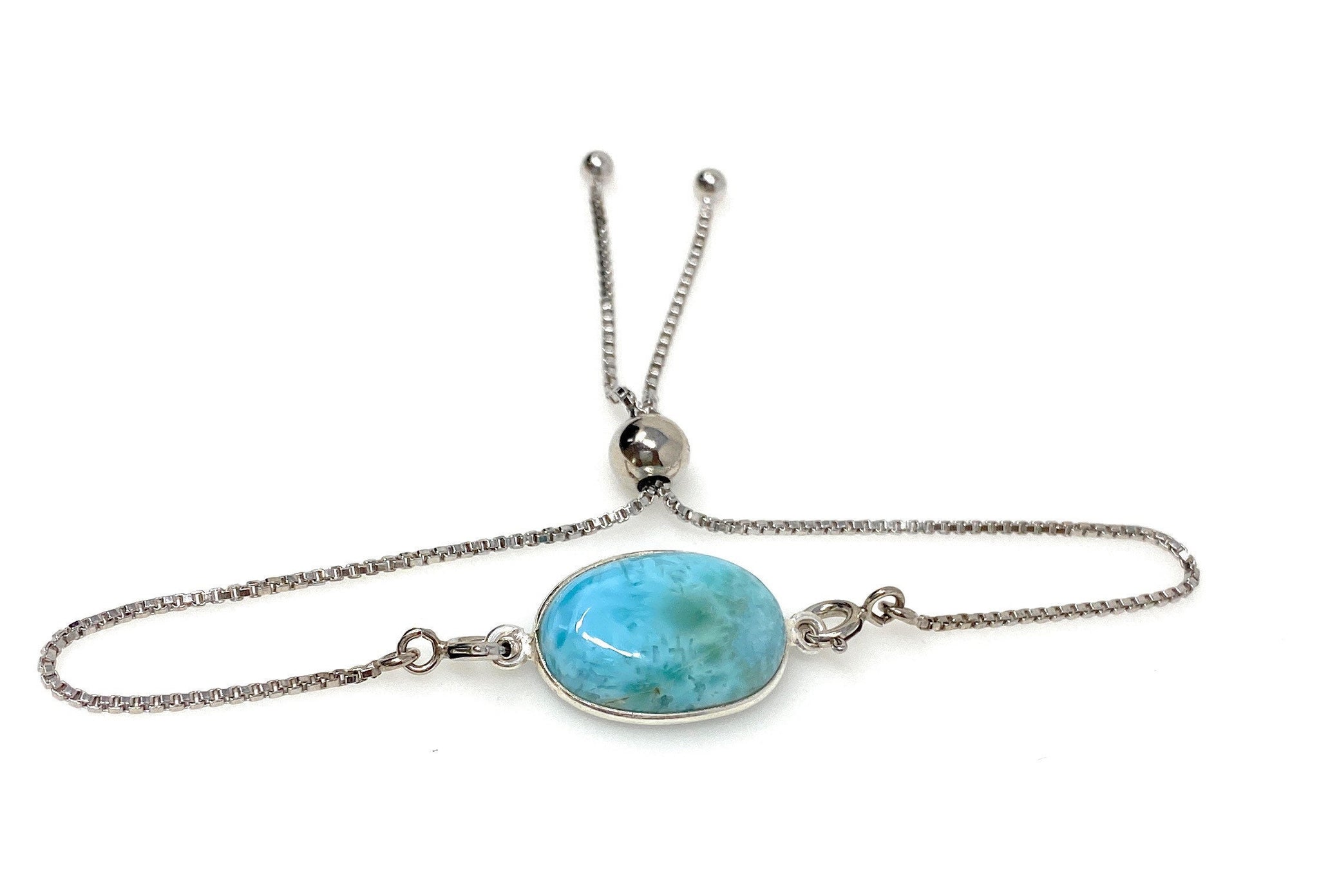 Larimar Gemstone Bracelet, Sterling Silver Adjustable Bracelet, AAA Quality Dominican Republic Larimar Bracelet, Gifts for Her
