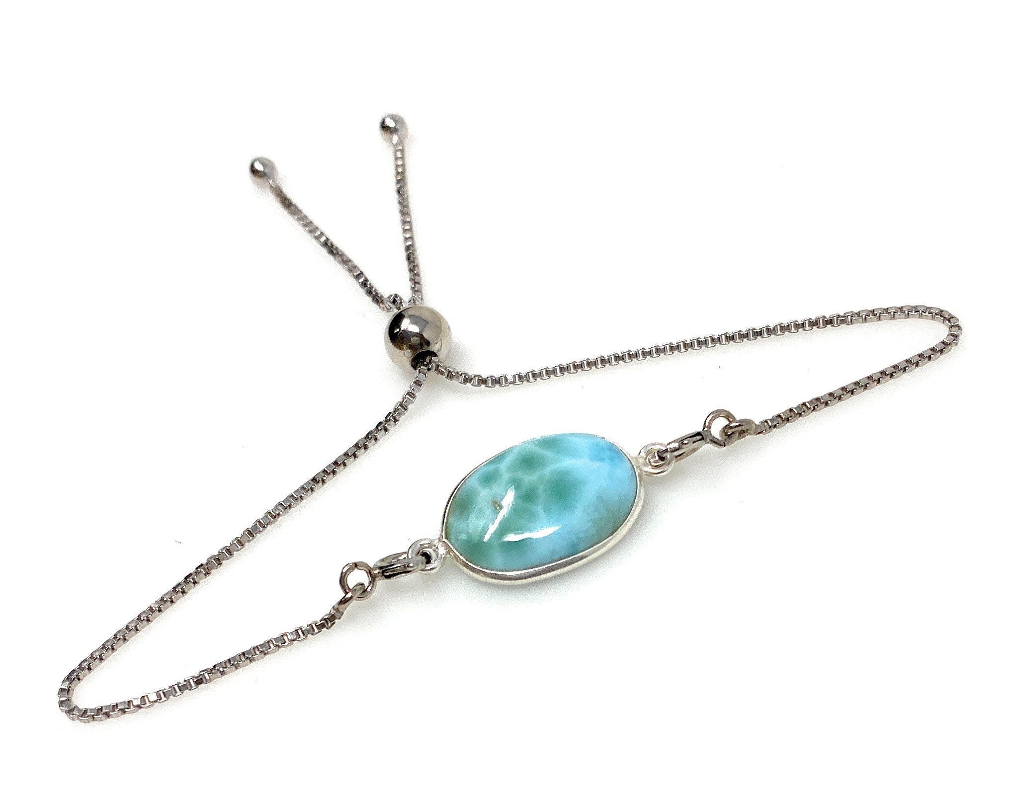 Larimar Gemstone Bracelet, Sterling Silver Adjustable Bolo Bracelet, AAA Quality Dominican Republic Larimar Bracelet, Gifts for Her