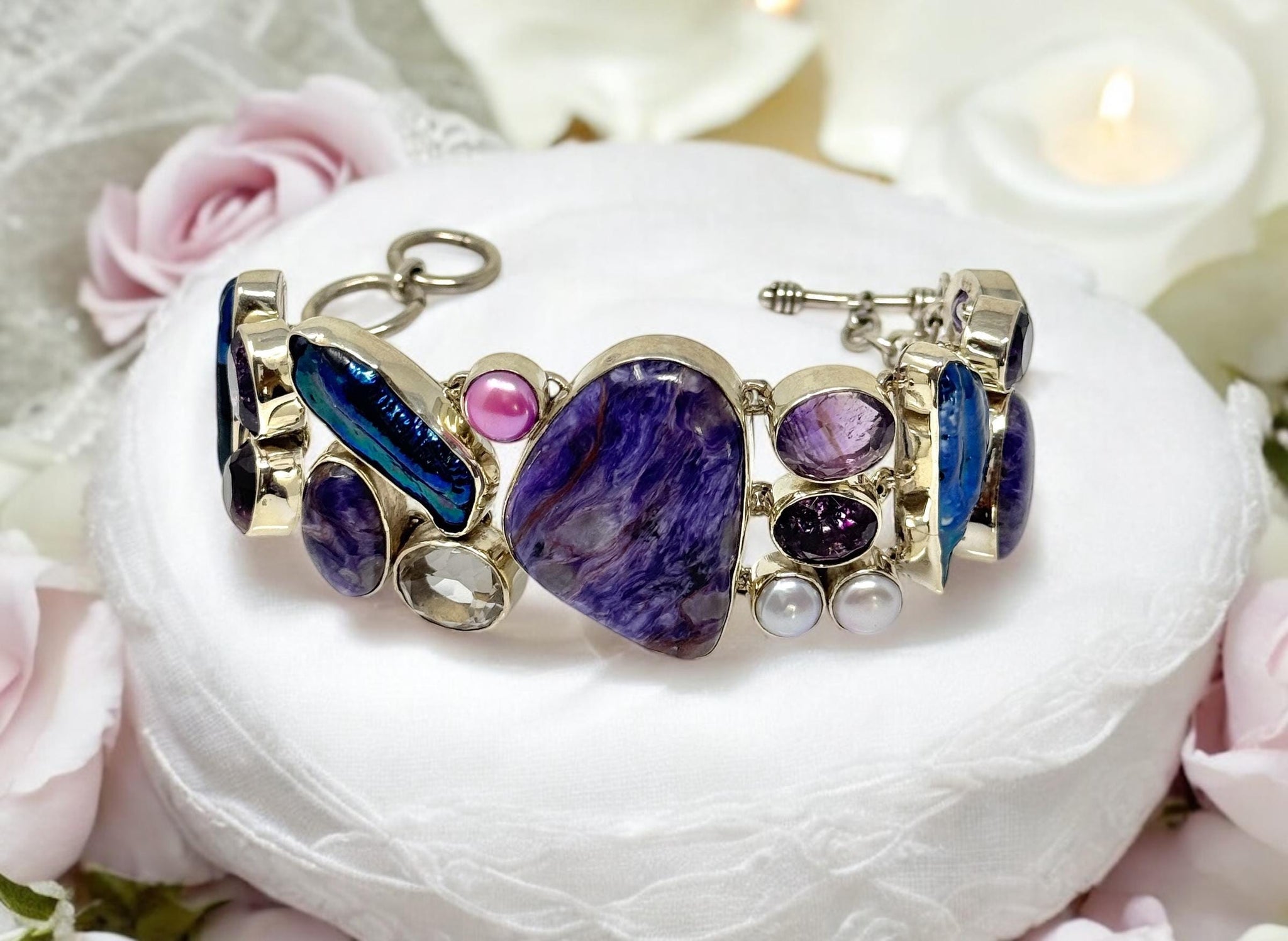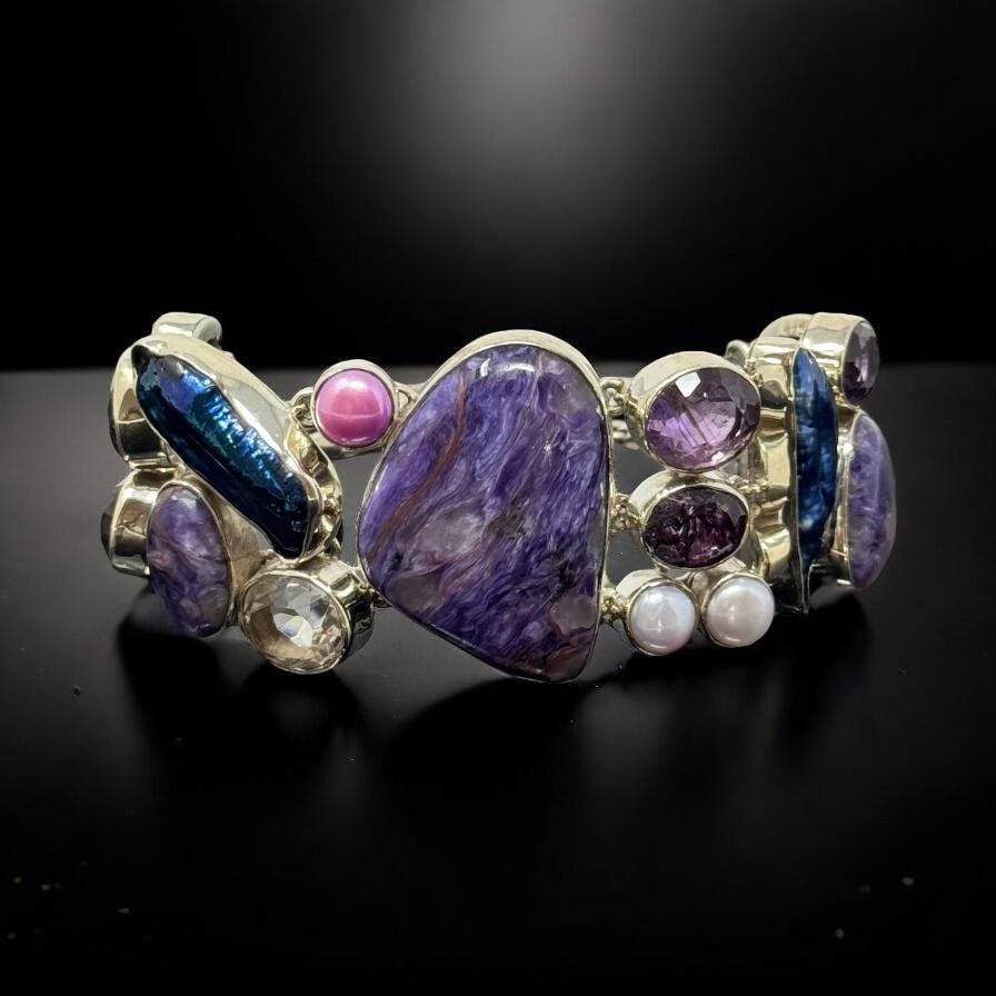 • Handcrafted with a mesmerizing blend of Charoite, Amethyst and Quartz.