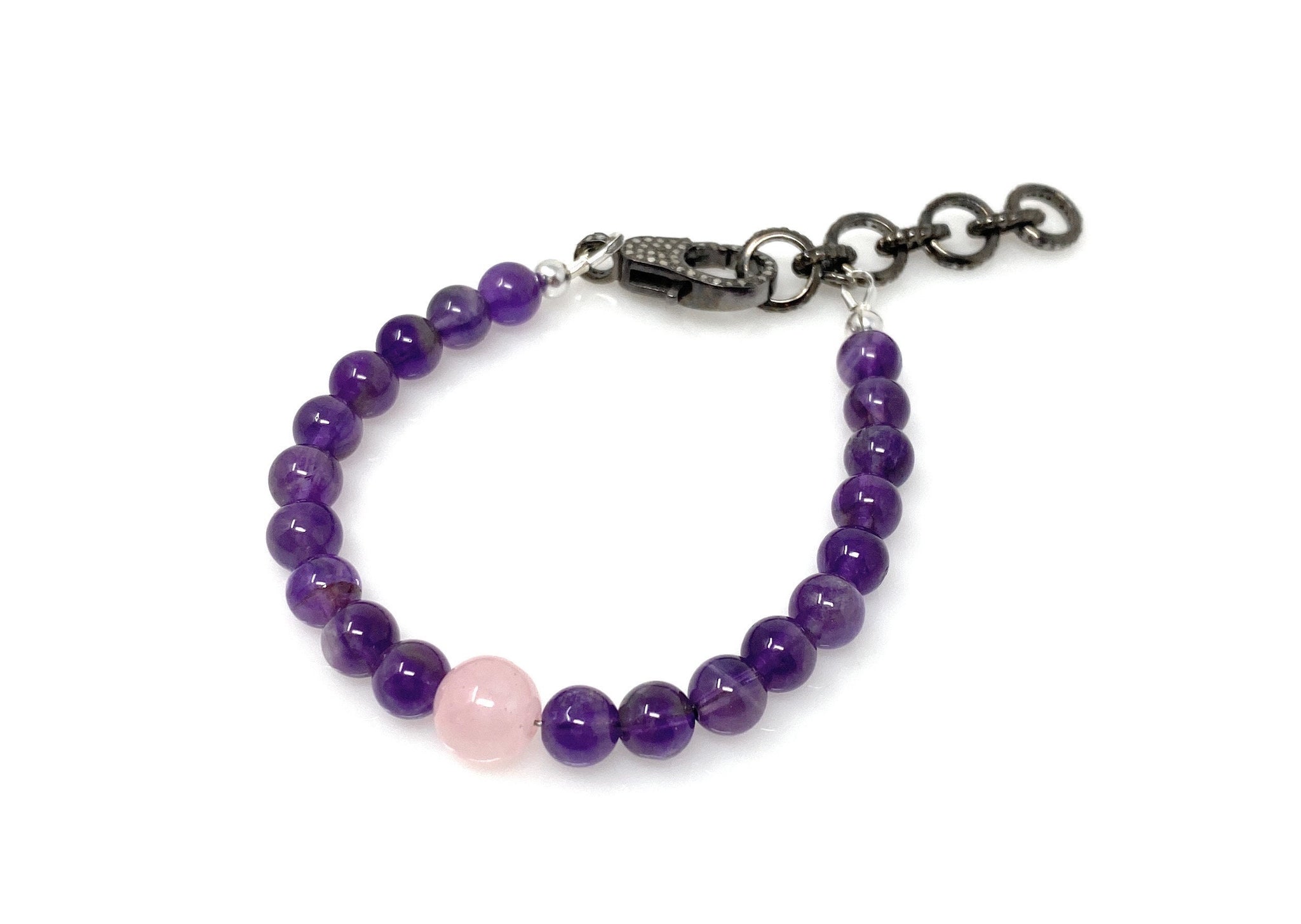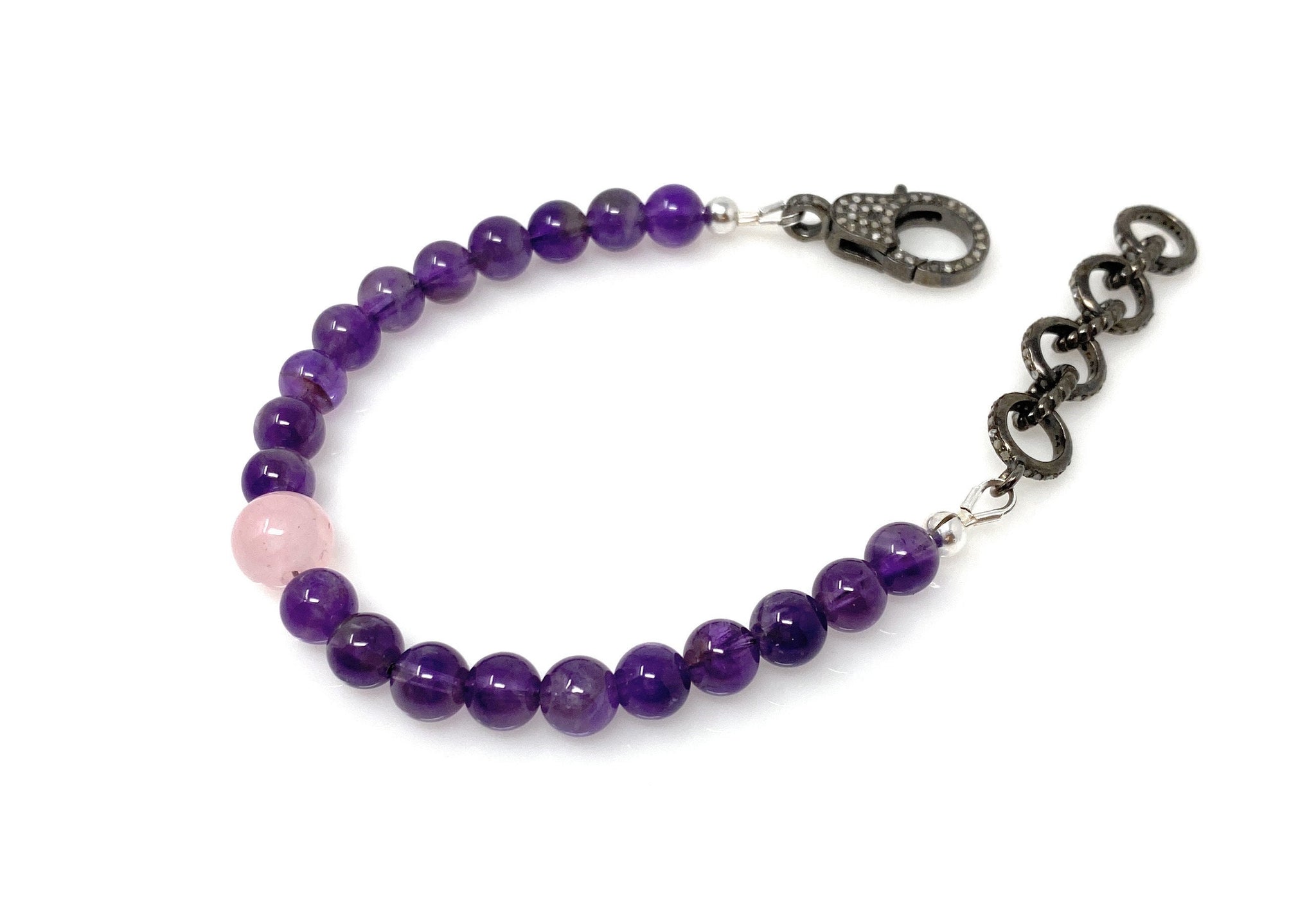 GEMSTONE : NATURAL ROSE QUARTZ, AMETHYST AND GENUINE DIAMONDS ( On Clasp and Extender Rings)