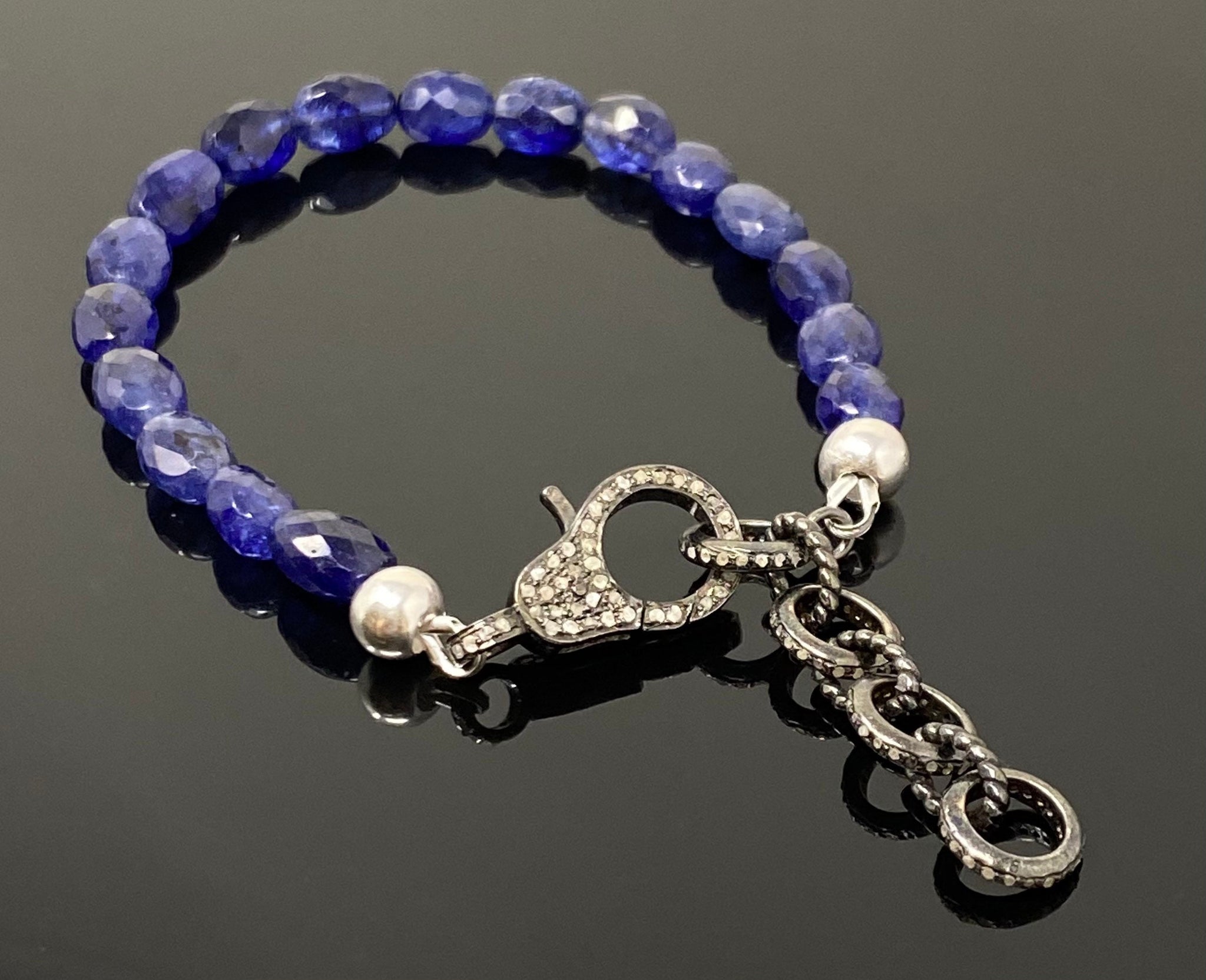 This beautiful Handmade Natural Blue Sapphire Gemstone Adjustable Bracelet is made with using Genuine Natural Blue Sapphire Beads and Genuine Diamond Clasp with Diamond Extender Links to adjust the bracelet to desired size and is an excellent choice for any occasion and makes a great gift for the loved ones.