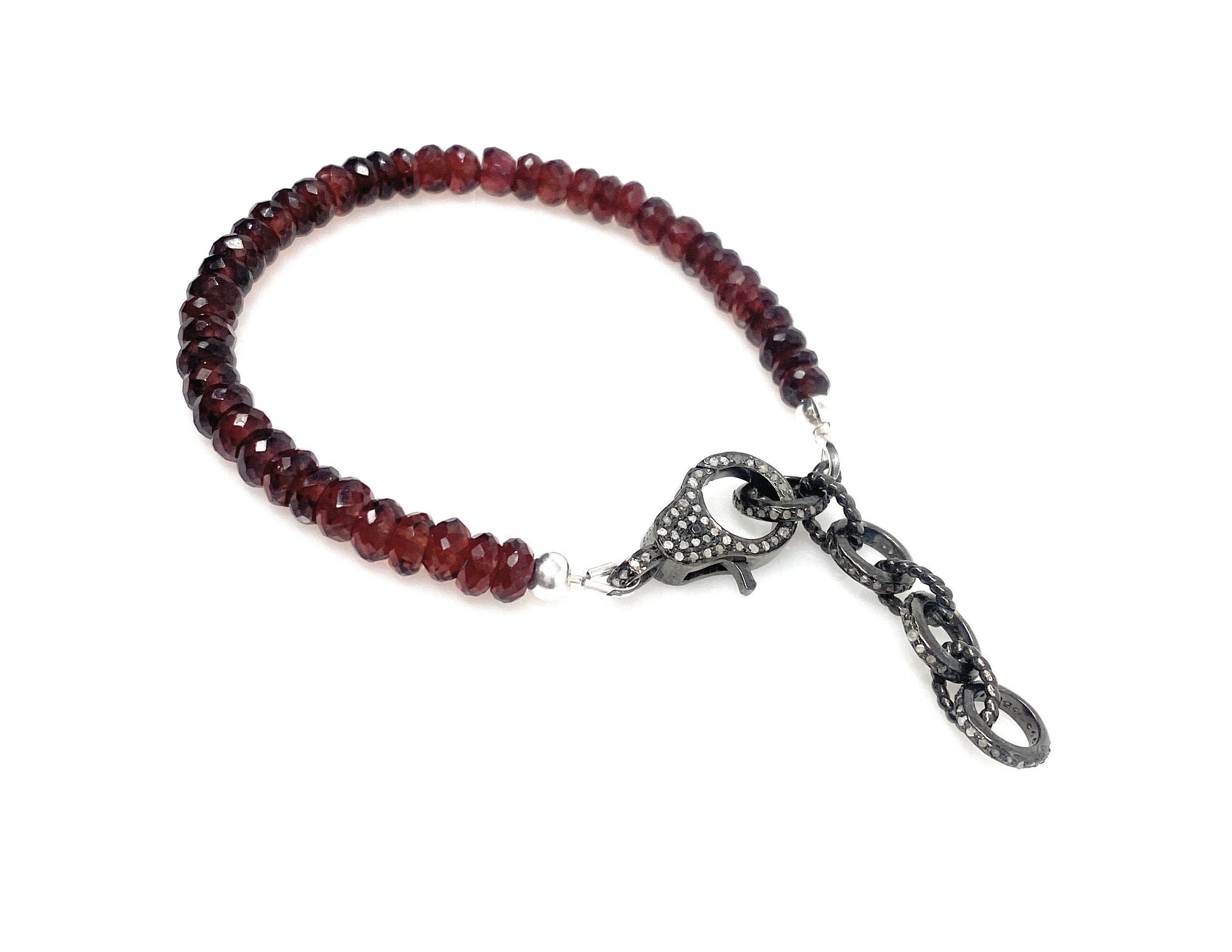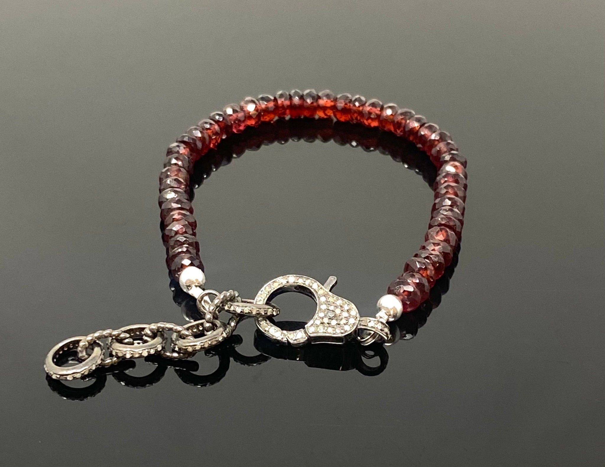 This beautiful Handmade Gemstone Adjustable Bracelet is made with using Genuine Natural Faceted Garnet Beads and Genuine Diamond Clasp with Diamond Extender Links to adjust the bracelet to desired size and is an excellent choice for any occasion and makes a great gift for the loved ones.