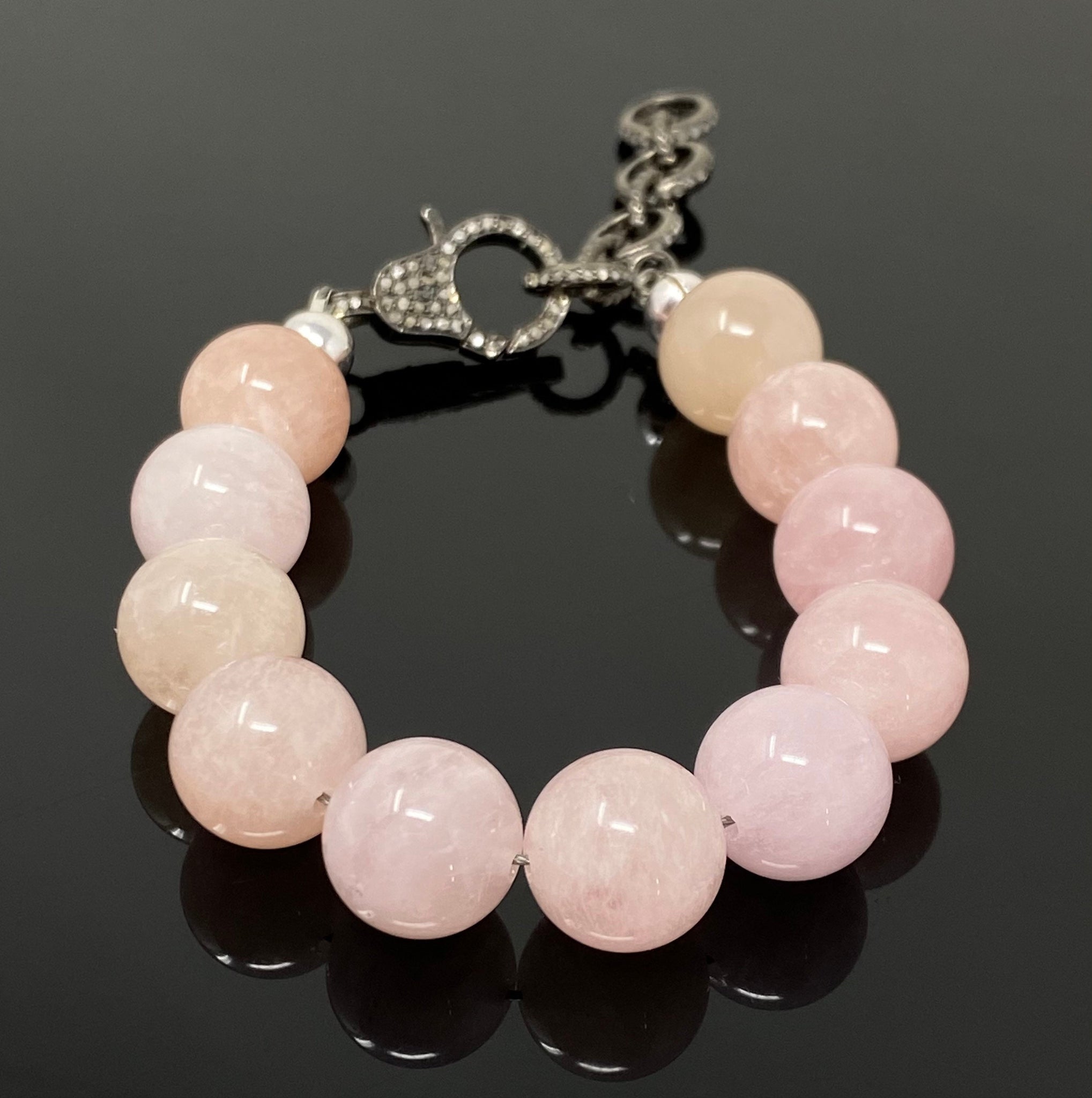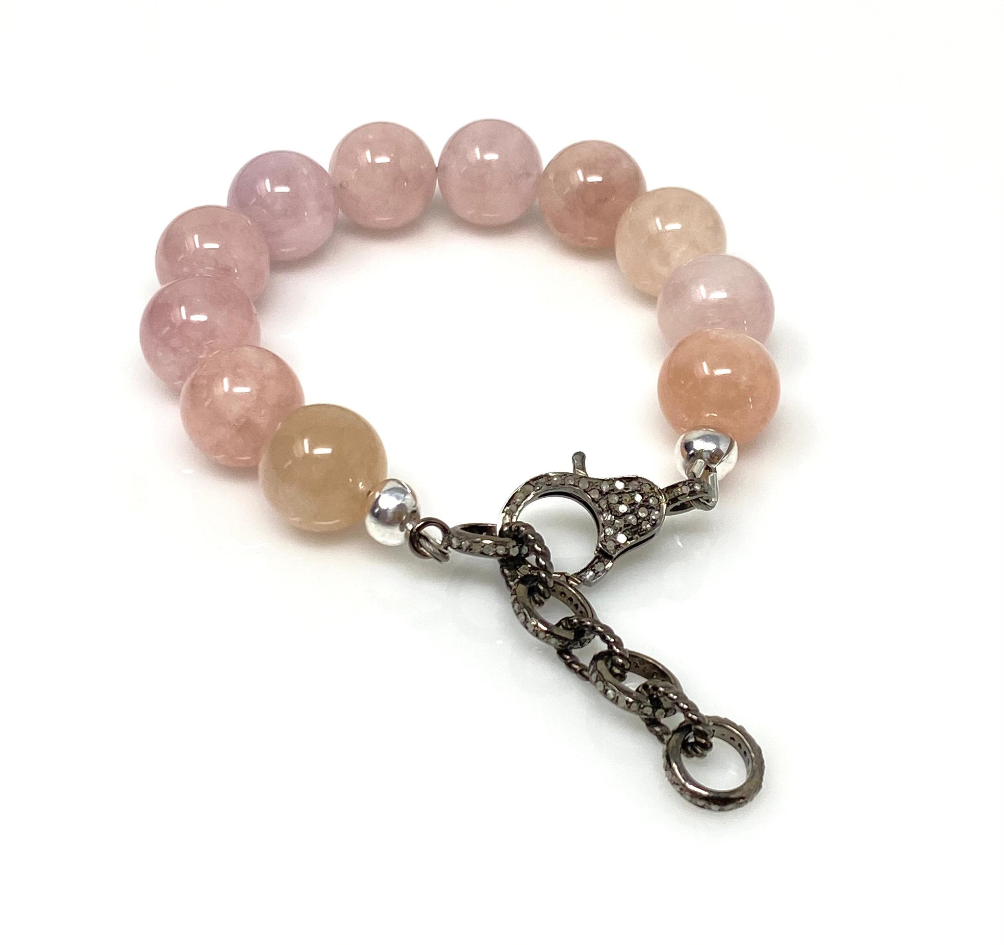 12mm Natural Morganite Gemstone Adjustable Pave Diamond Bracelet Jewelry.