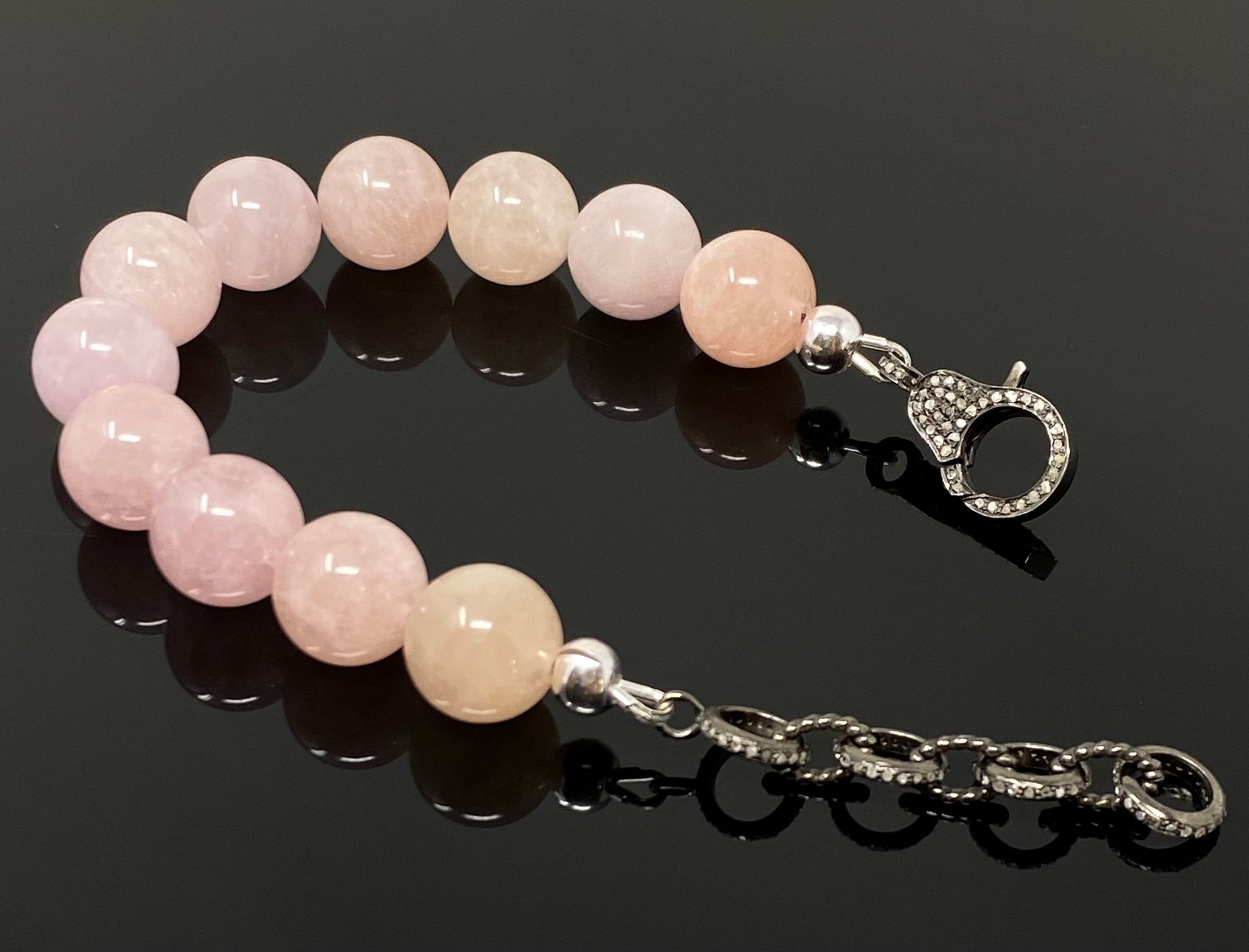 Natural Morganite Gemstone Bracelet, Pave Diamond Adjustable Bracelet, AAA Grade Morganite Jewelry