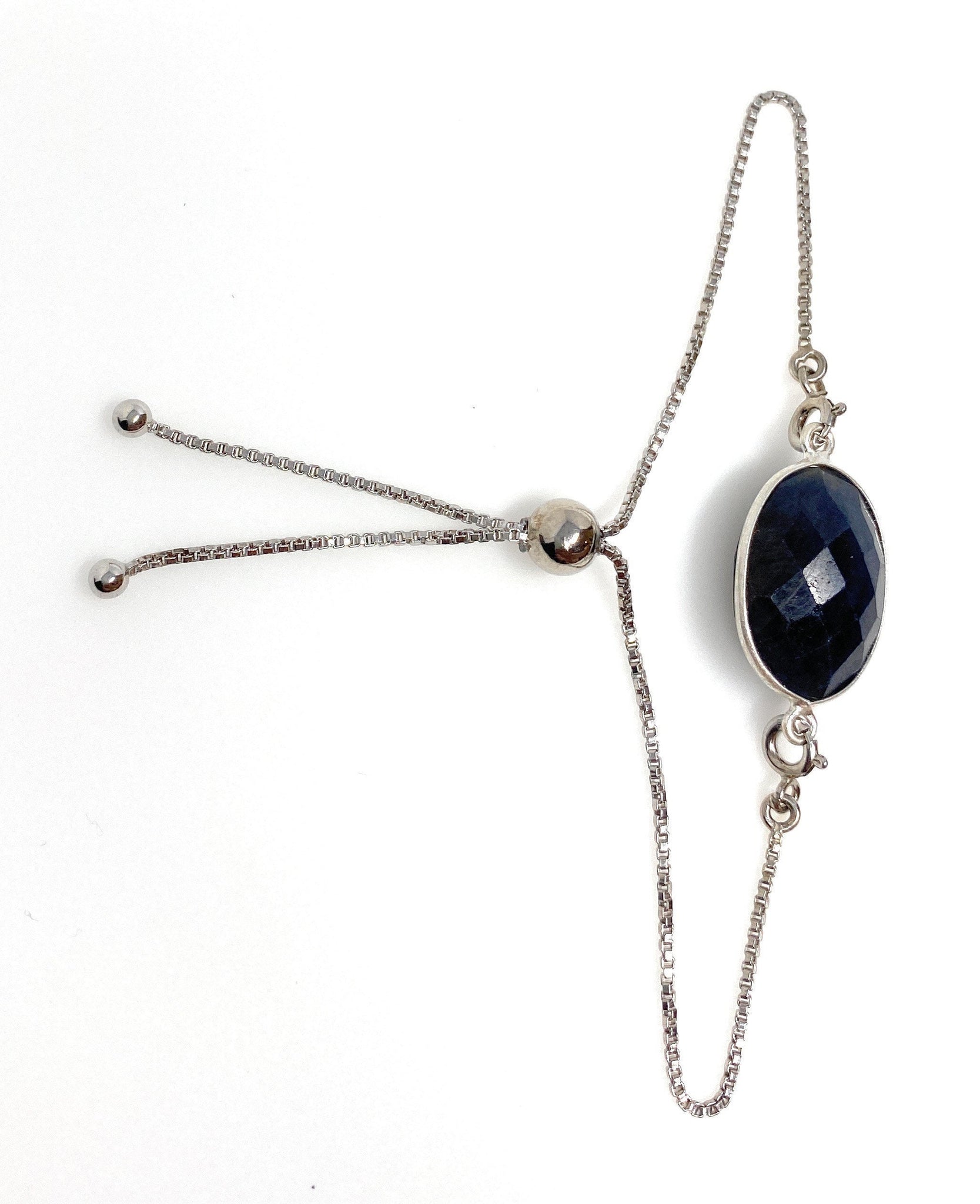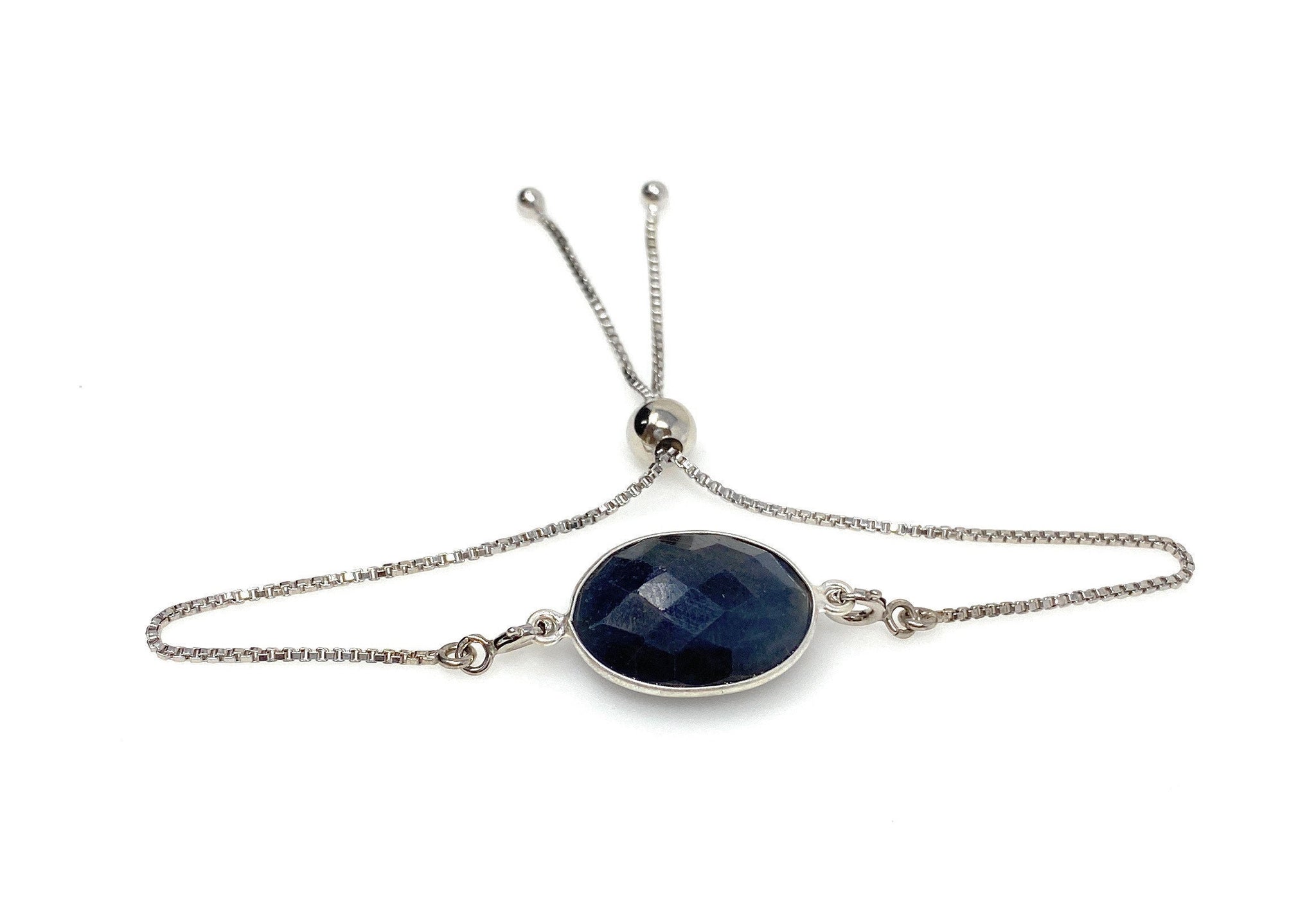 Natural Sapphire Gemstone Bracelet, Sterling Silver Adjustable Bolo Bracelet, Blue Sapphire Jewelry, September Birthstone, Gifts for Her