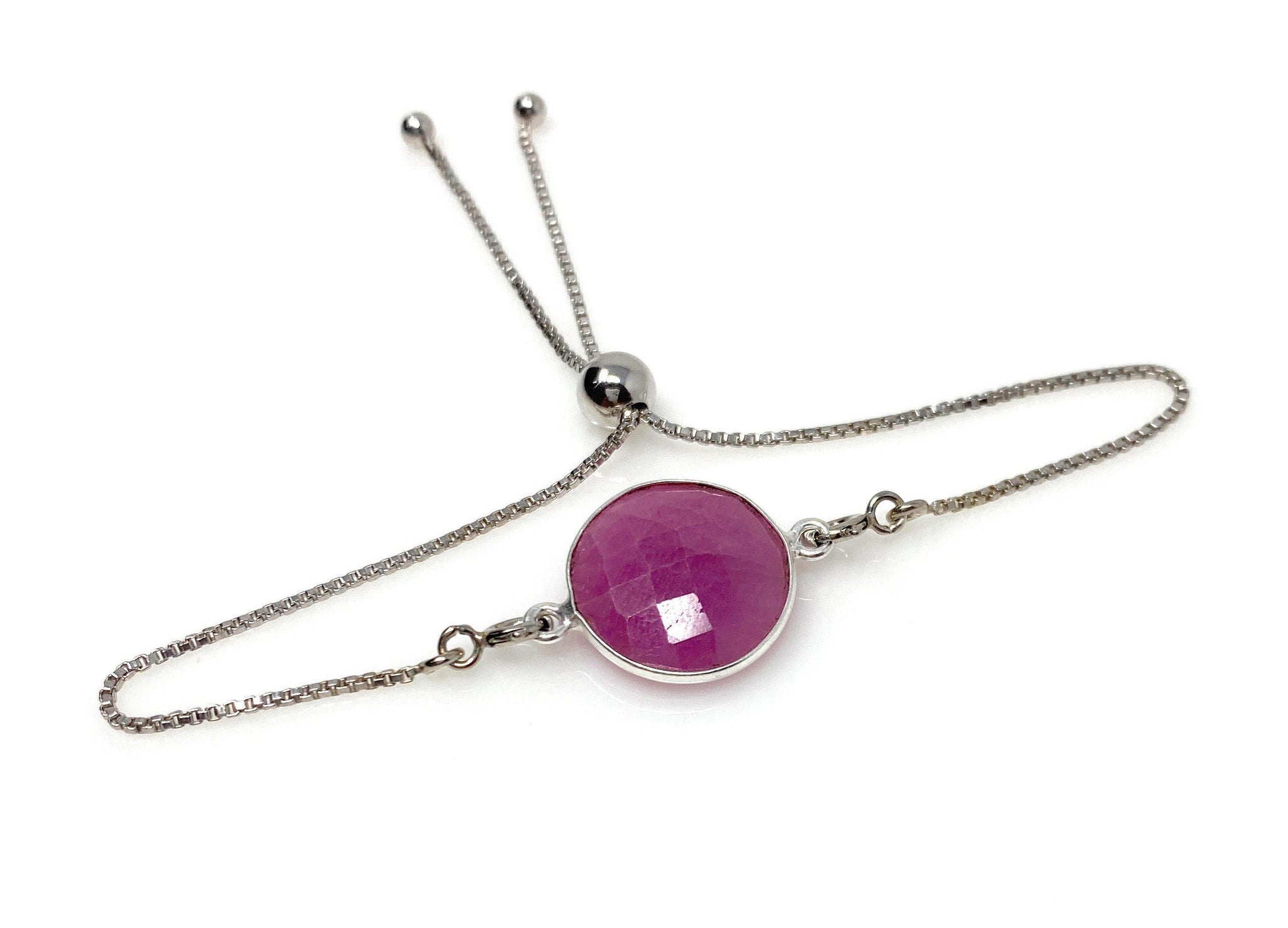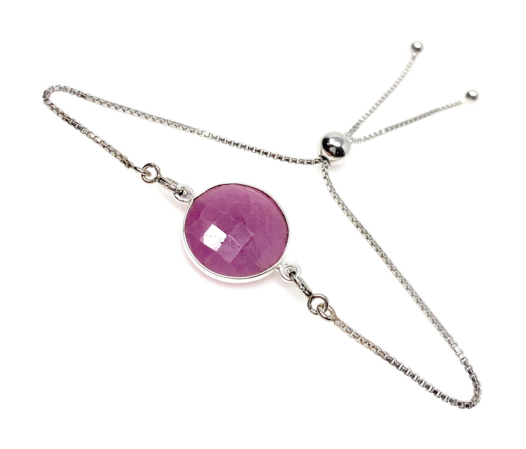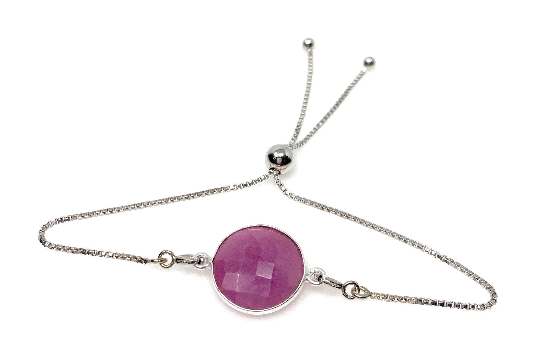 Pink Sapphire Gemstone Bracelet, Sterling Silver Adjustable Bolo Bracelet, Layering Bracelet, Gifts for Her
