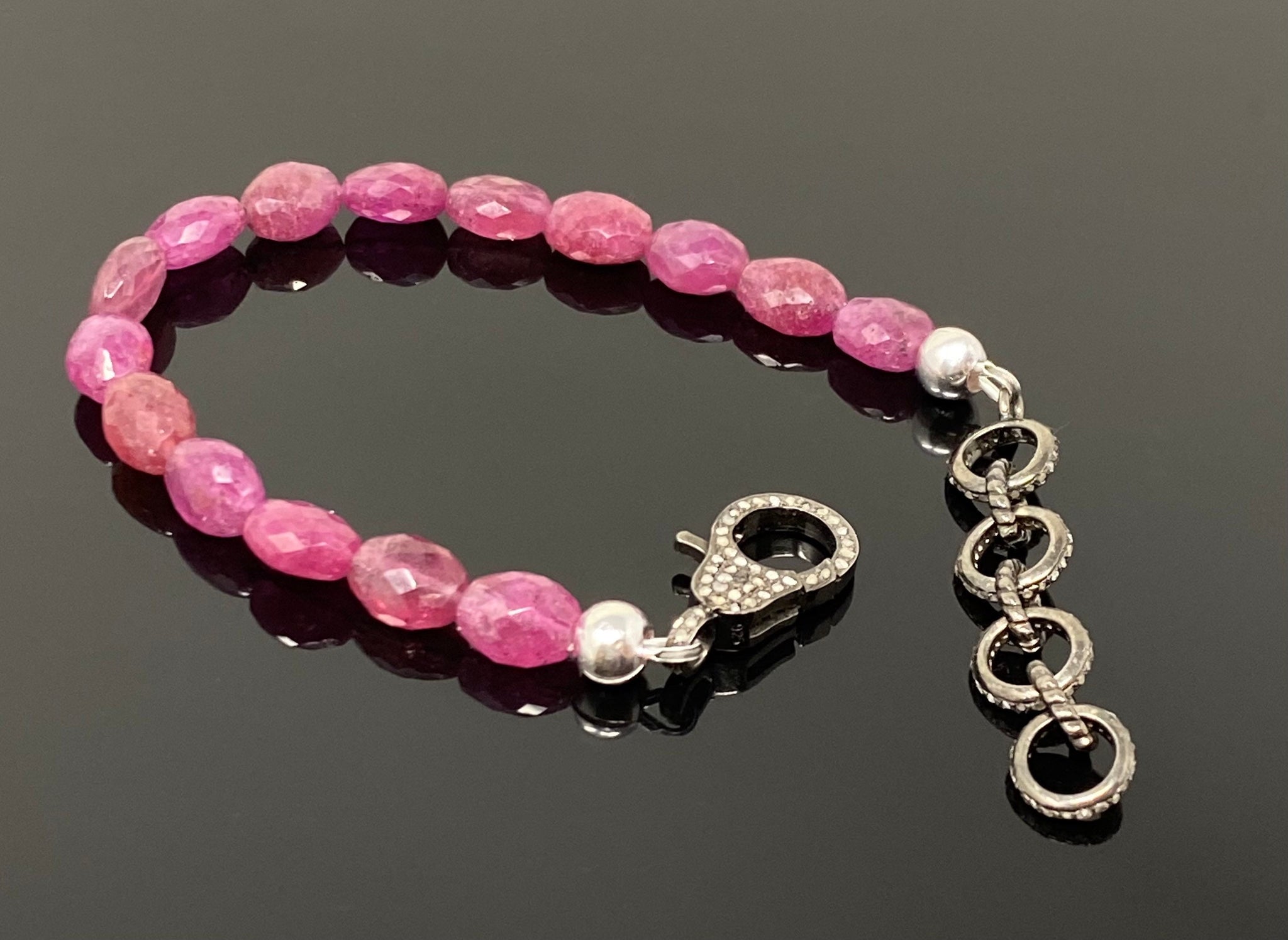 Beautiful, well-crafted pink sapphire bead bracelet. Gorgeous pink sapphires and natural diamond clasp. Tarini had the time, patience and excellent customer service to ask me how I wanted the bracelet length and custom worked a solution to satisfy my requests. Patience and wonderful customer service attitude!! Such a wonderful Etsy seller. Super fast shipping and excellent packaging. Will definitely order merchandise and be a repeat customer.