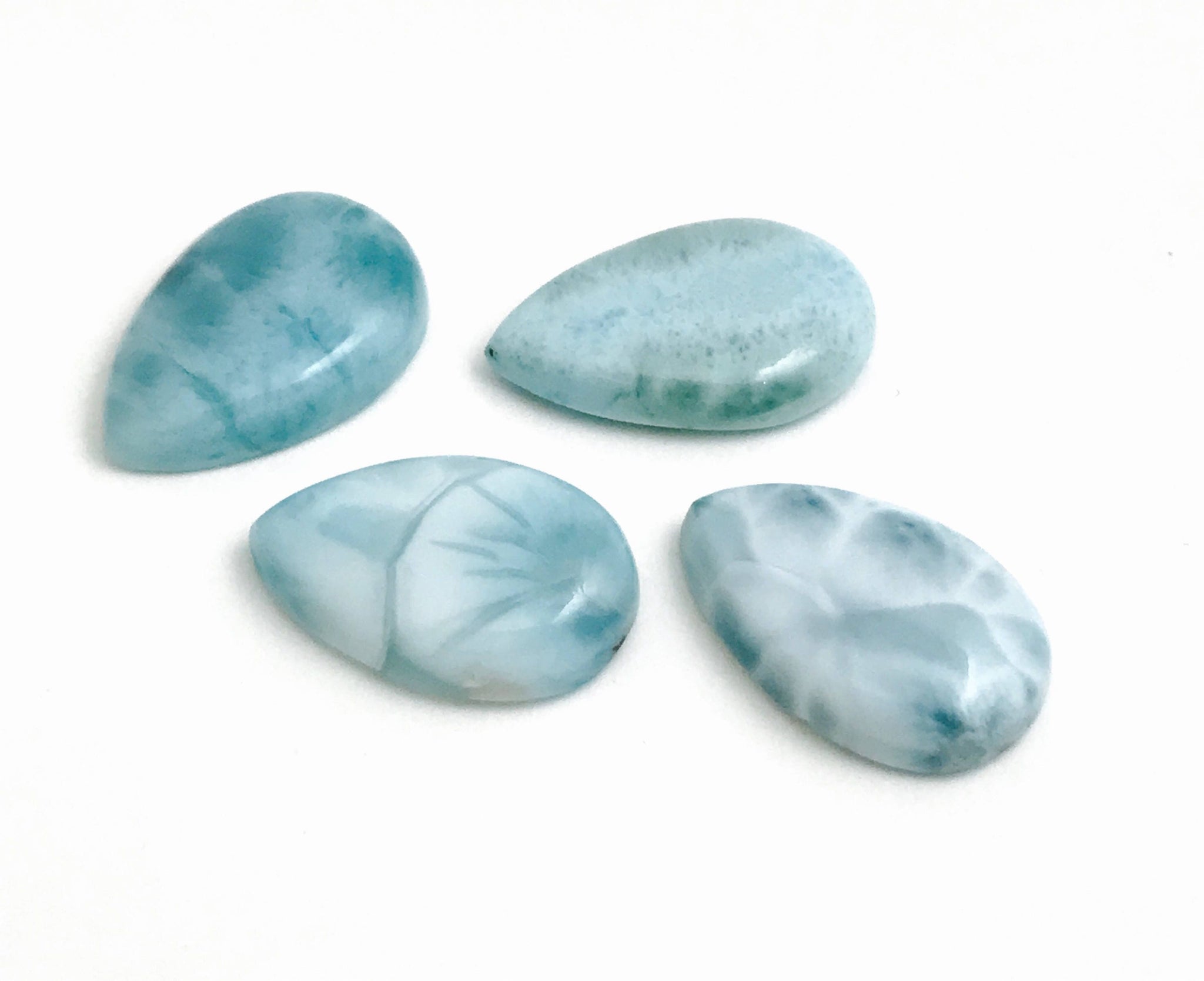 These Beautiful Lot of 4 Pieces of Large Size Tear Drop Shape AAA+ Grade High Quality Smooth Hand Polished from Front and Back Larimar Gemstone Cabochons are perfect for making Wire Wrapped Jewelry or for making any Creative Jewelry Piece.