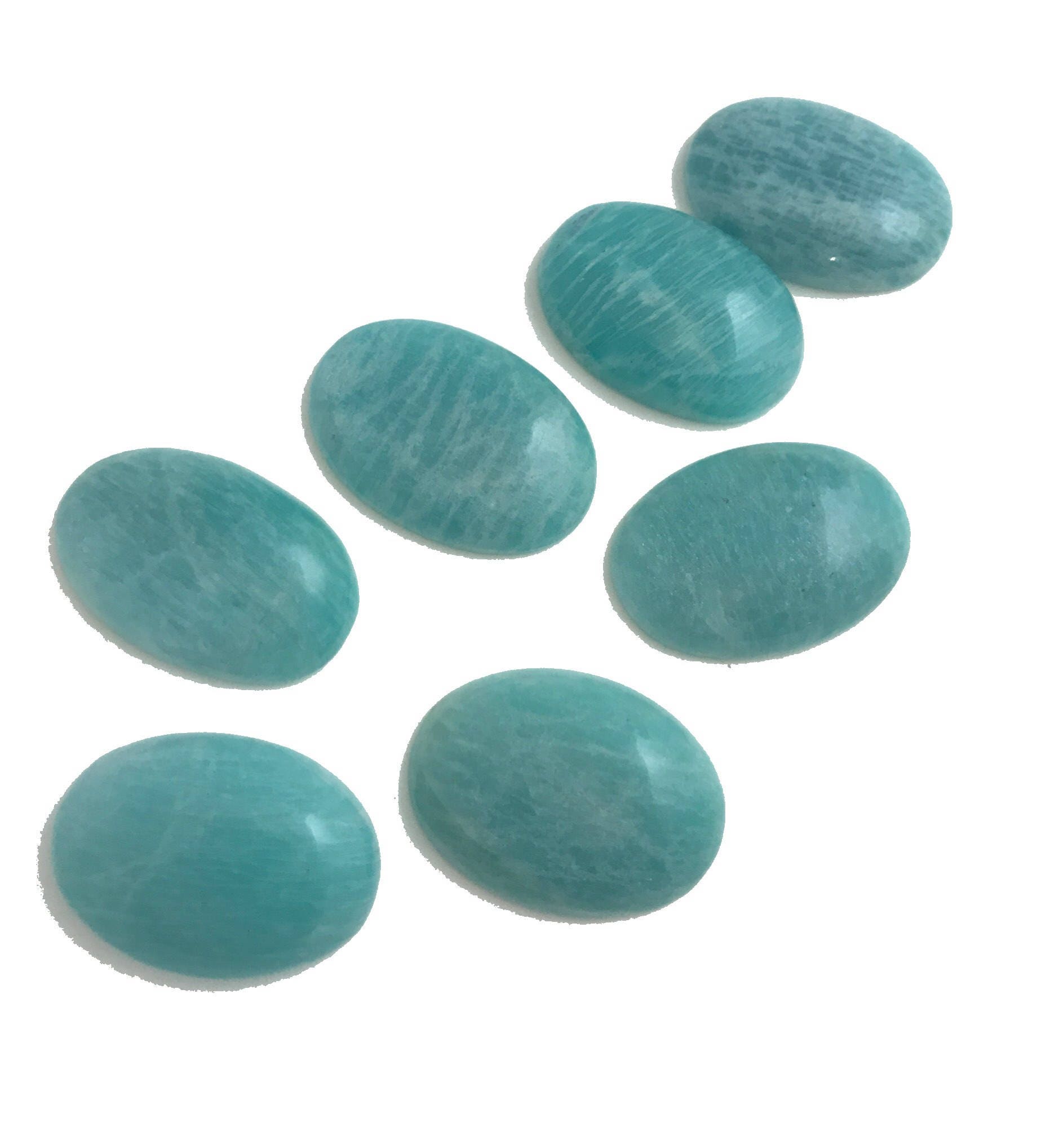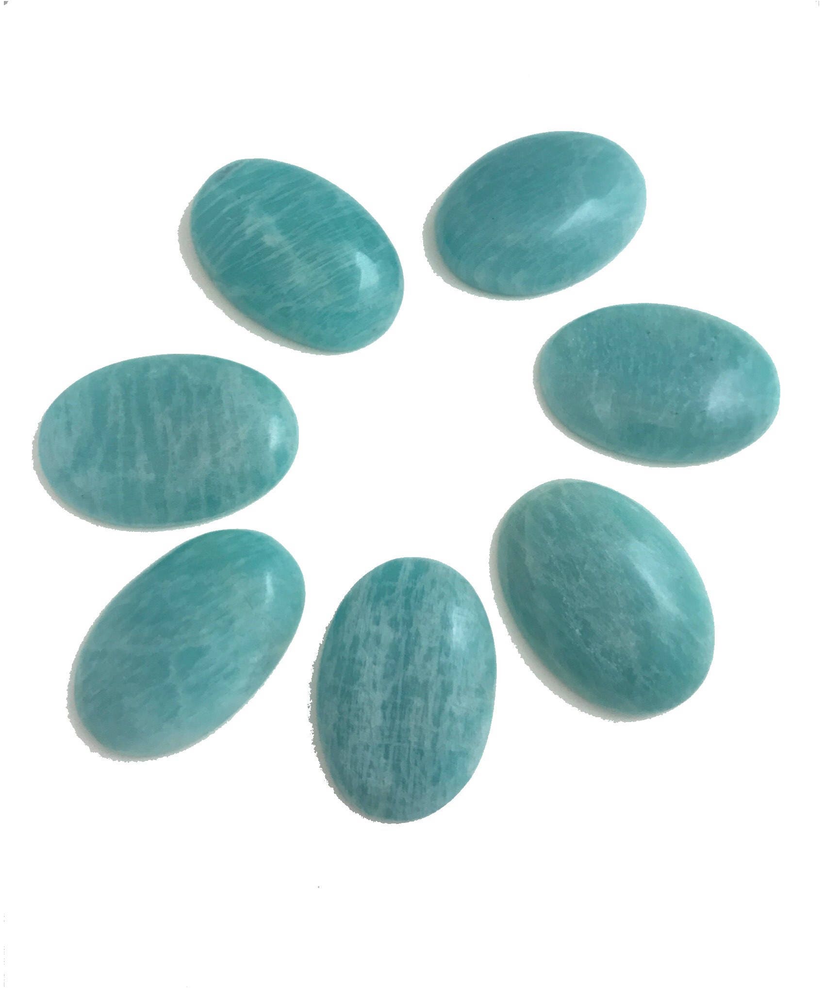 7 Pcs Bulk Lot of Natural Amazonite Large Size Oval Shape Smooth AAA+ Grade High Quality Hand Polished Front and Back Gemstone Cabochon for Wire Wrapping and Jewelry Making at Wholesale Price.