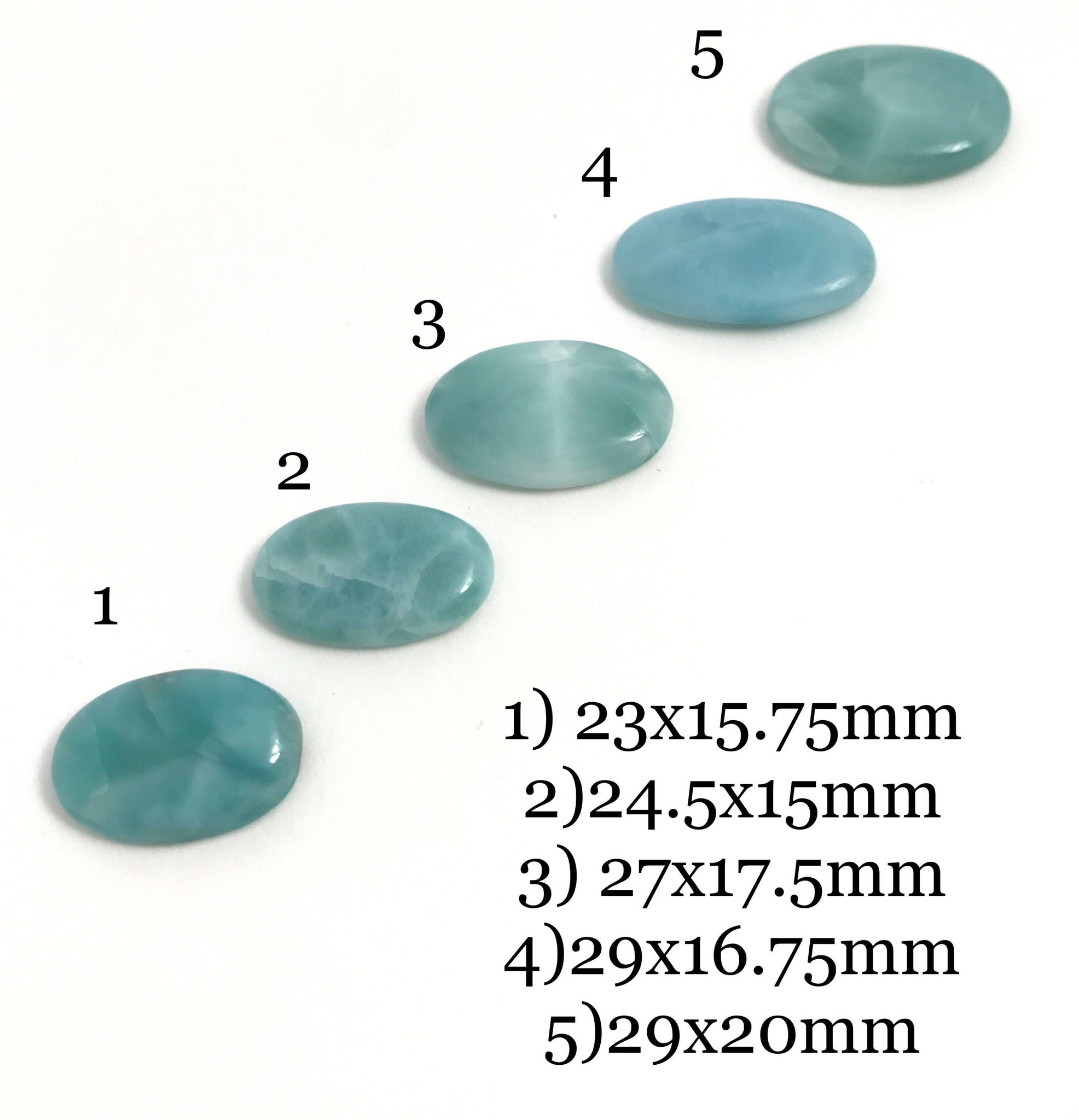 These Beautiful Oval Shape High Quality AAA+ Grade Smooth Hand Polished Front and Back Dominican Republic Larimar Gemstone Cabochons are perfect for making Wire Wrapped Jewelry or for making any Creative High End Jewelry Piece.