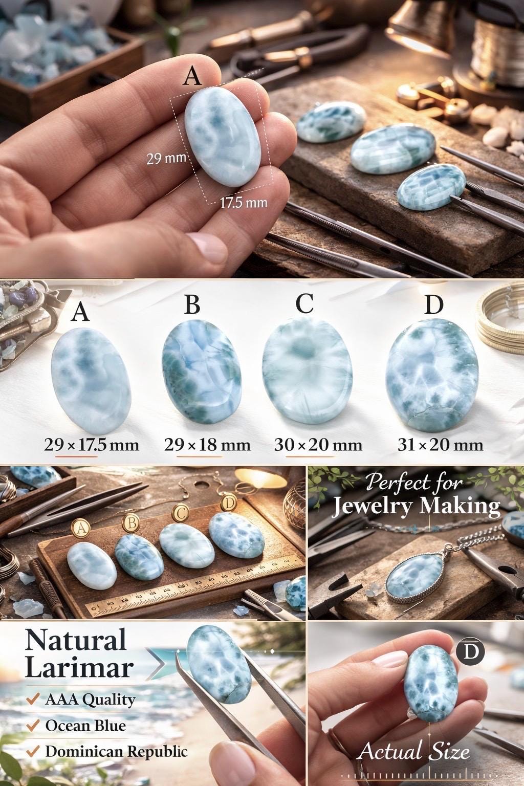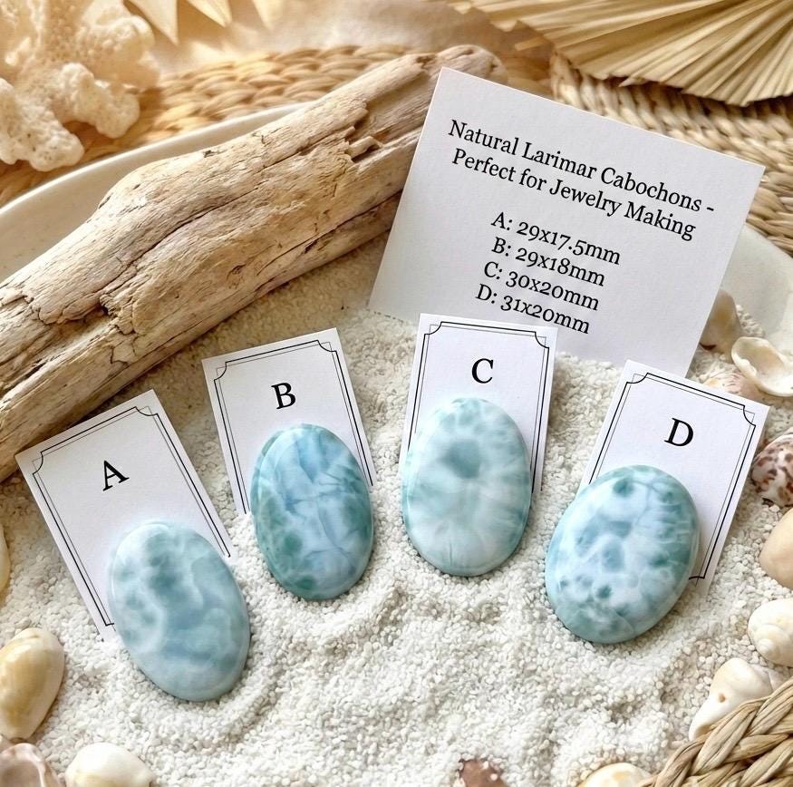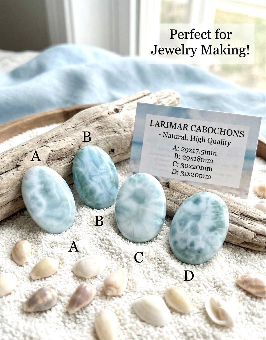 Natural Larimar Cabochon Loose Gemstone, Dominican Blue Larimar AAA, Pendant Ring Stone for Jewelry Making, Healing Chakra Crystal Gemstone