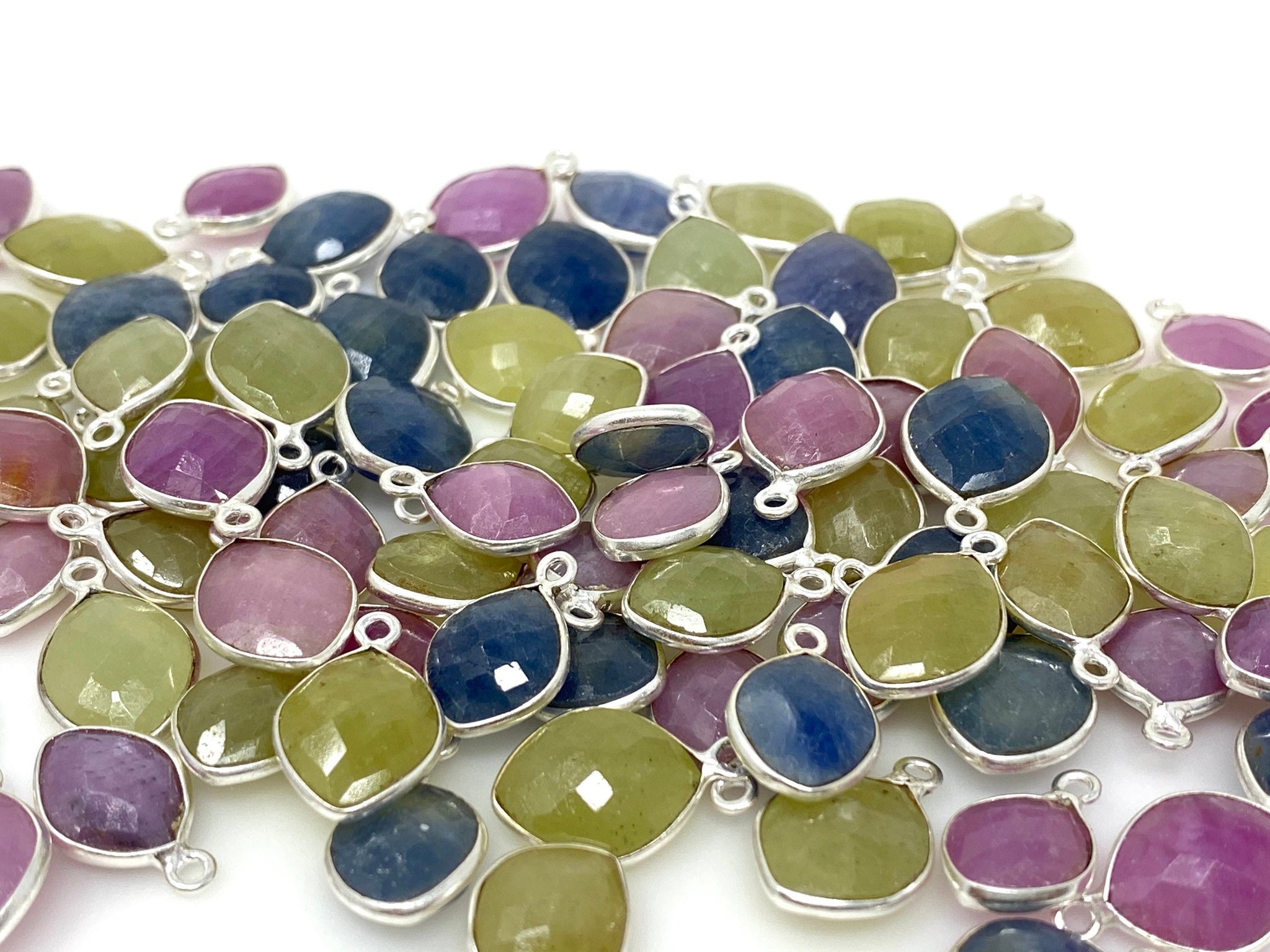10 Pcs/ 14 Pcs Natural Sapphire Gemstone Charms, Sterling Silver Jewelry Supplies, Bulk Wholesale Charms, 15x10mm - 18x12mm