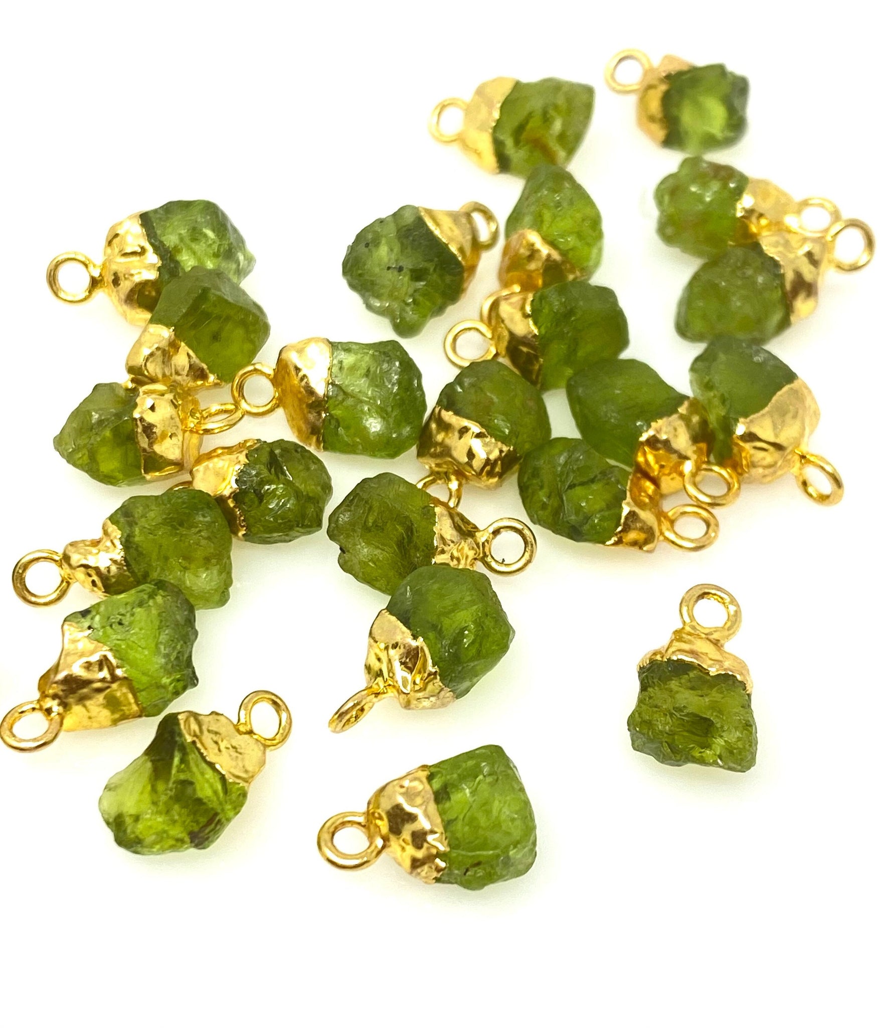 Natural Raw Peridot Electroplated Charms for Jewelry Making at Wholesale Price.