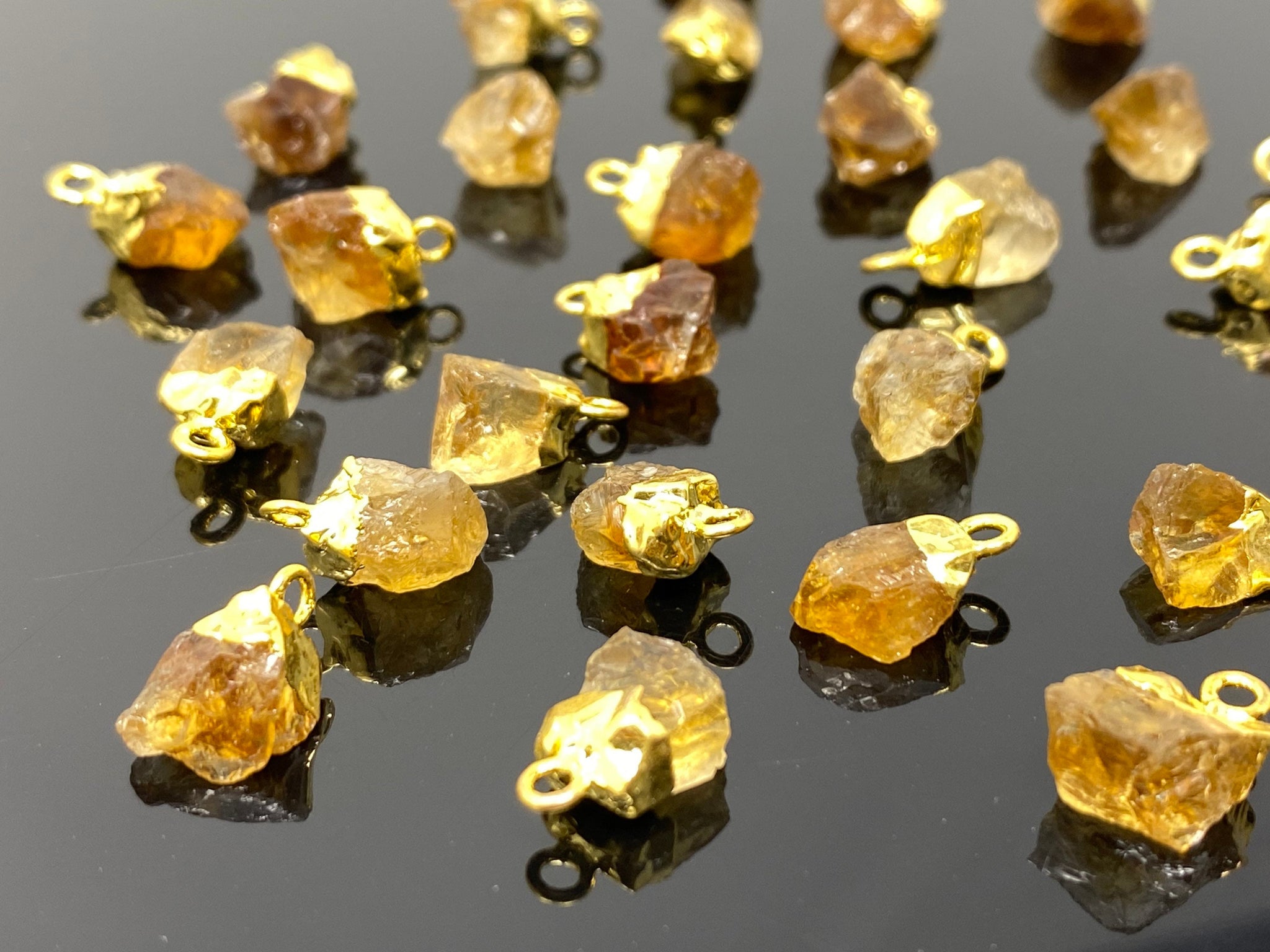 Natural Rough Citrine Gemstone Electroplated Charms Jewelry Supplies for Jewelry Making at Wholesale Price.