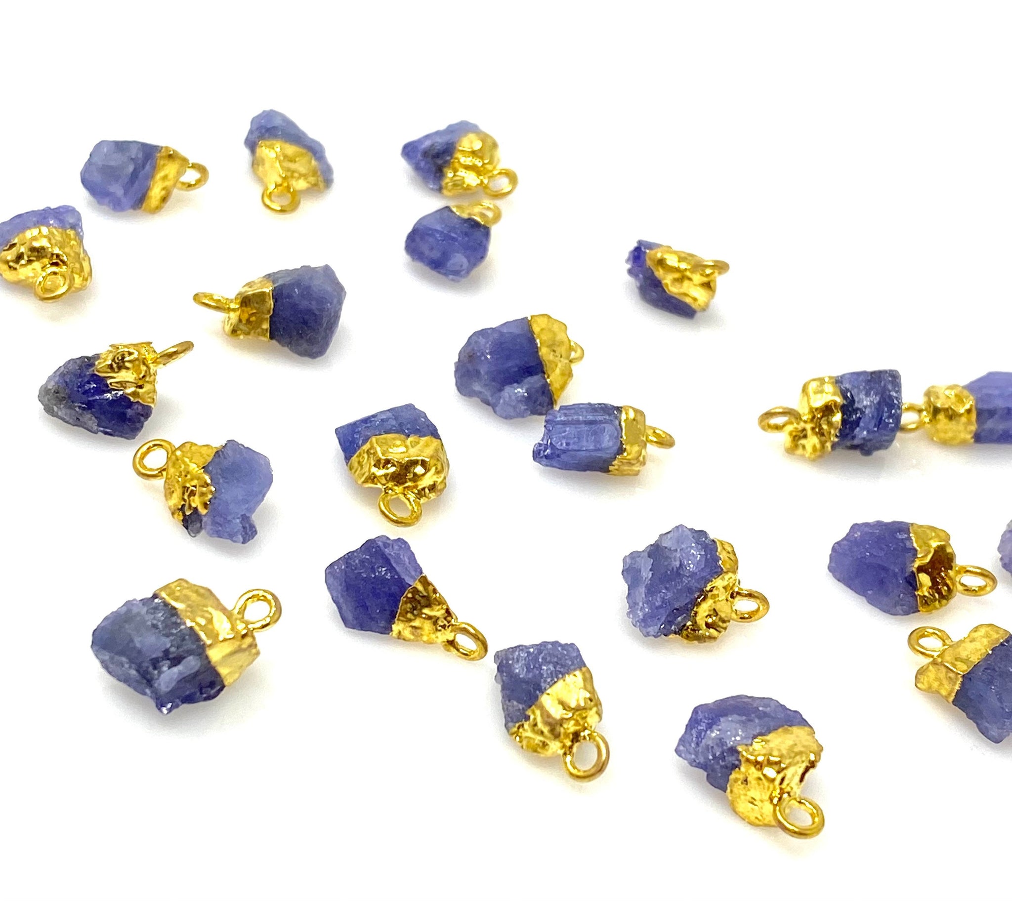 10 Pcs Raw Tanzanite Gemstone Charms, Rough Gold Electroplated Tanzanite Charms, Bulk Wholesale Jewelry Supplies, 12mm- 15mm