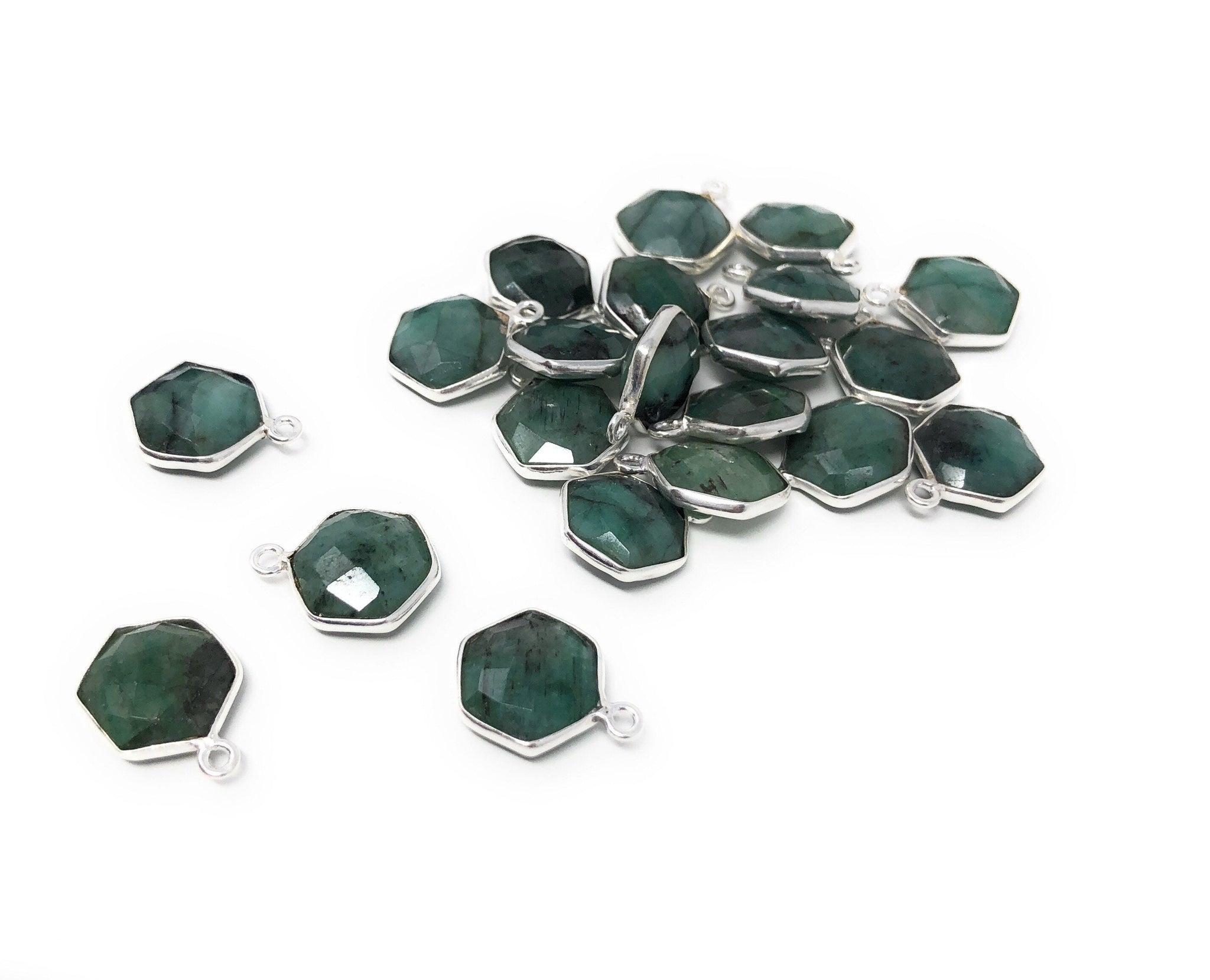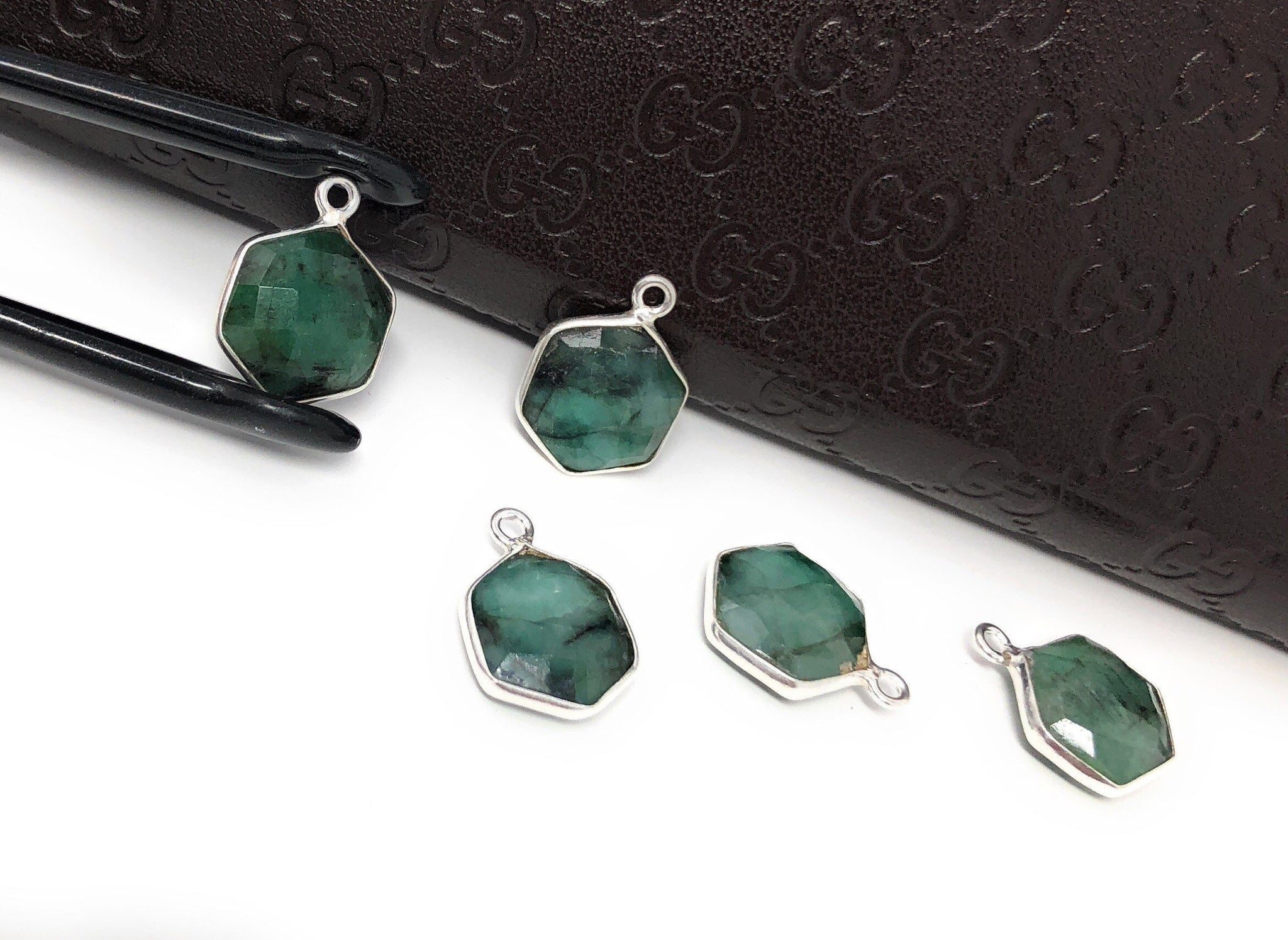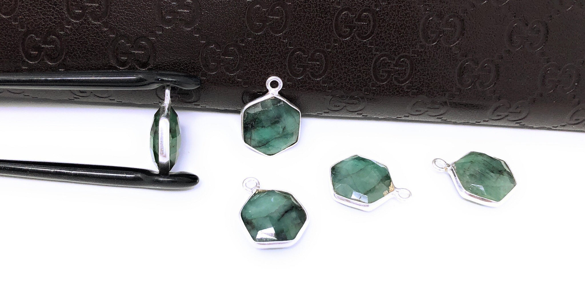 These beautiful Sterling Silver Double Sided Bezel Set Faceted Sakota Emerald Charms are handmade and can be used used for making any creative Jewelry Piece.