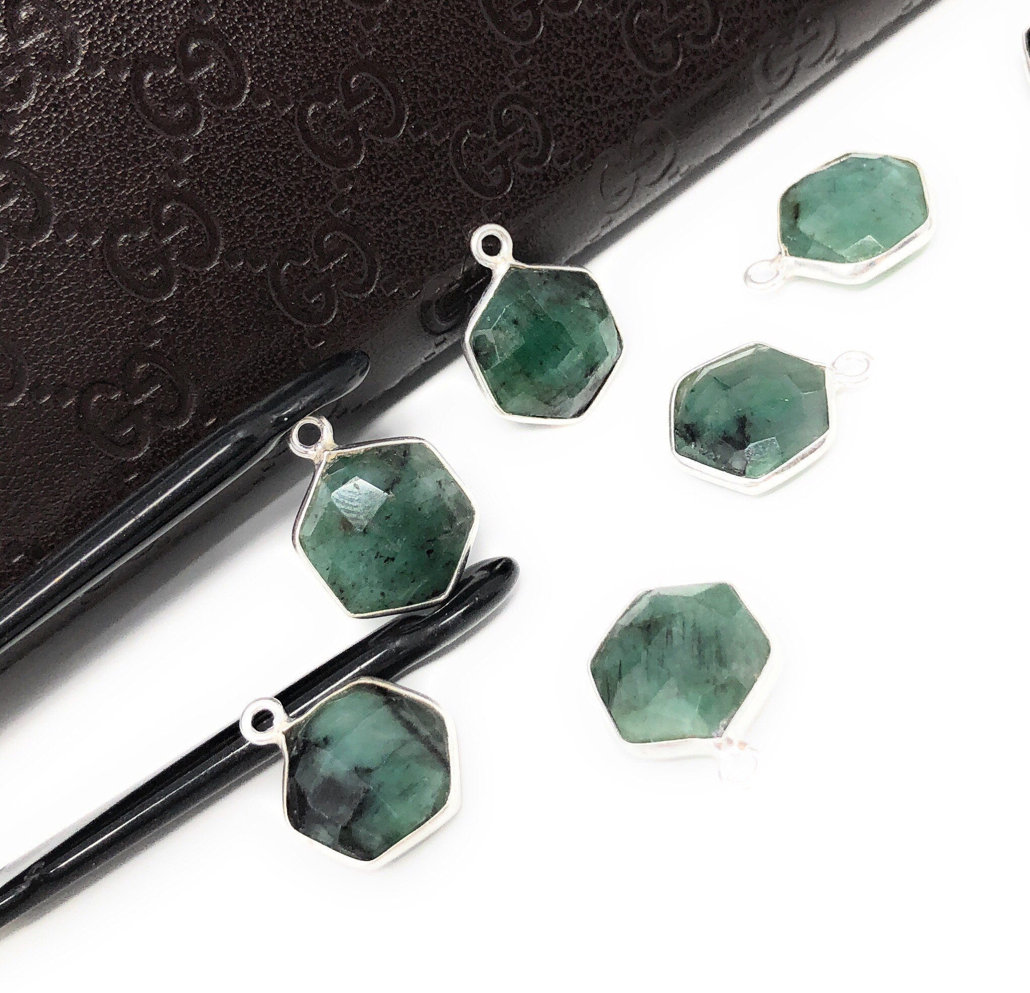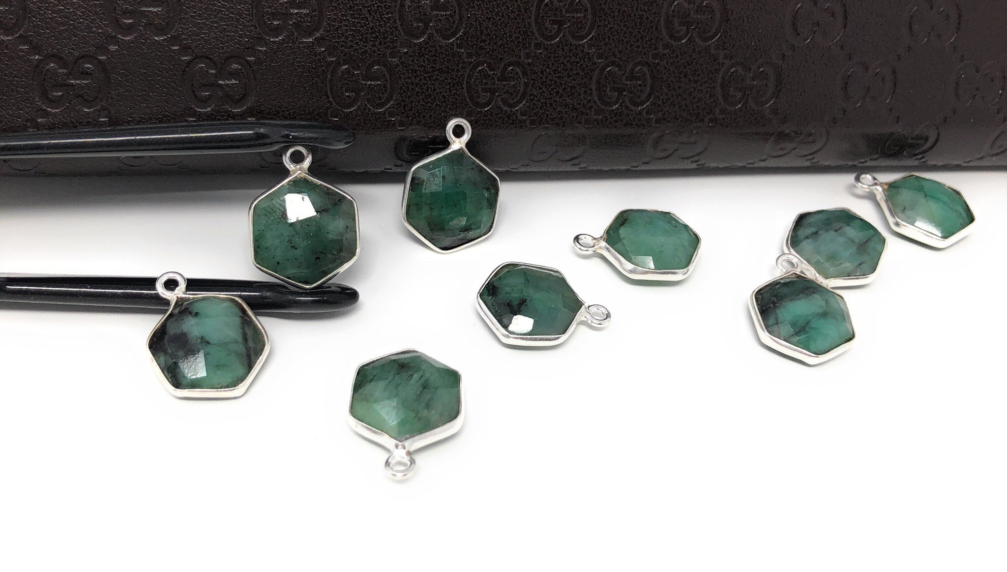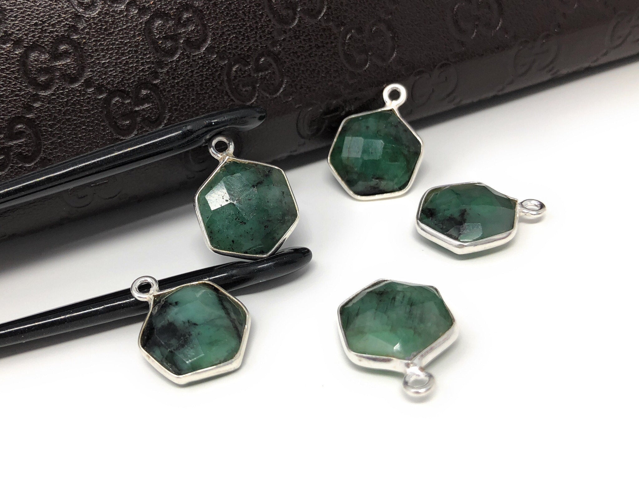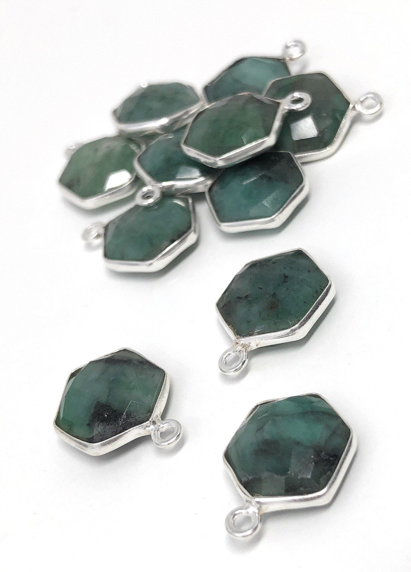 These beautiful Sterling Silver Double Sided Bezel Set Faceted Sakota Emerald Charms are handmade and can be used used for making any creative Jewelry Piece.