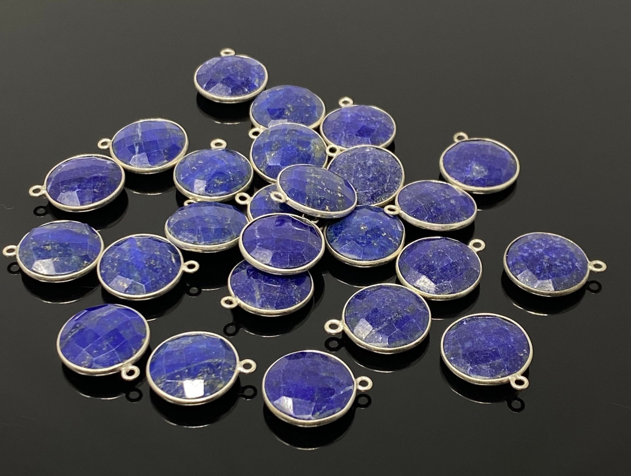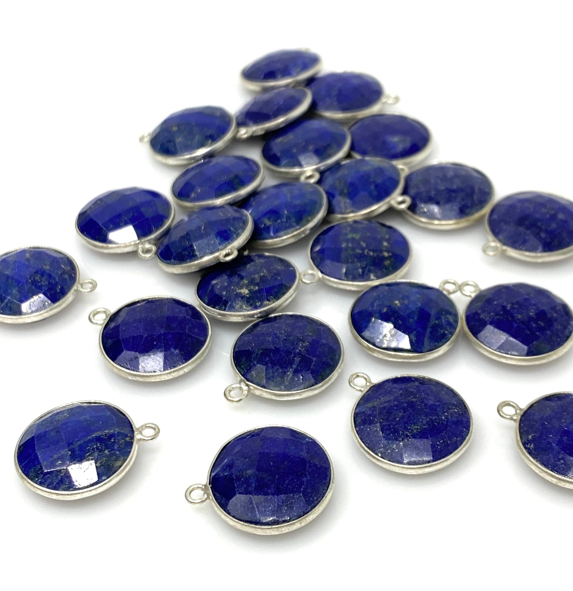 Silver Plated Gemstone Lapis Lazuli Bezel Charms Jewelry Supplies for Jewelry Making.