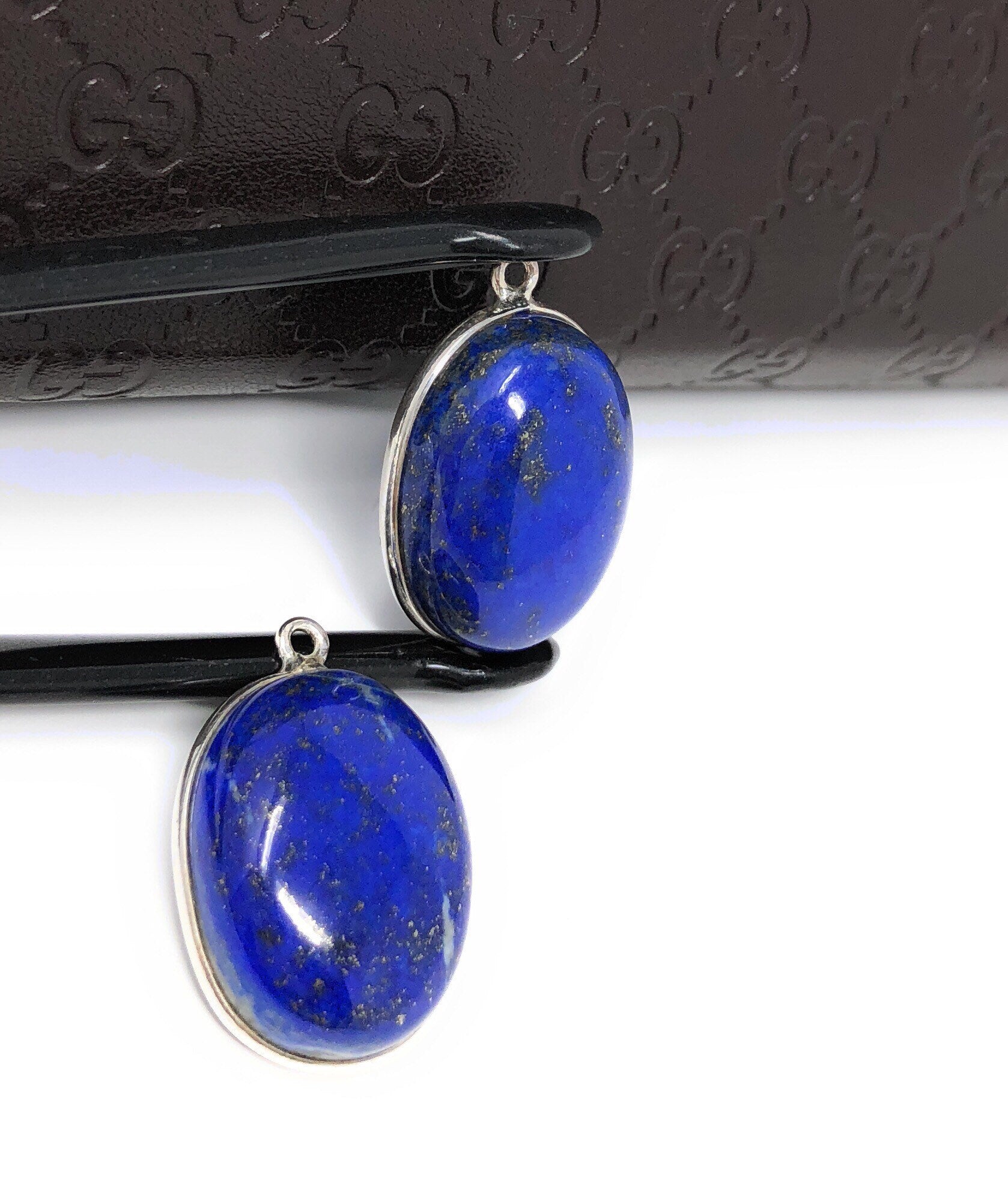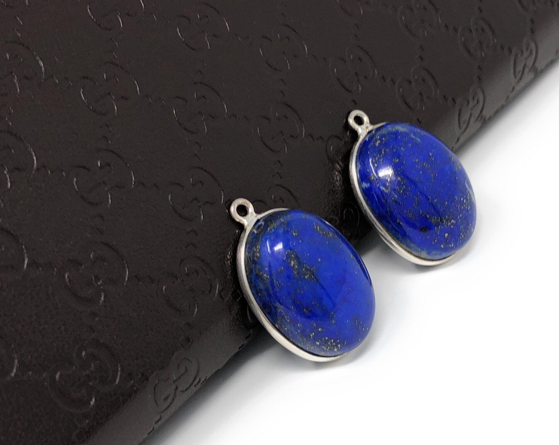Bulk Lot 2 Pcs Sterling Silver Natural Gemstone Smooth Lapis Lazuli Bezel Set Charm Jewelry Supplies for Jewelry Making at Wholesale Price.