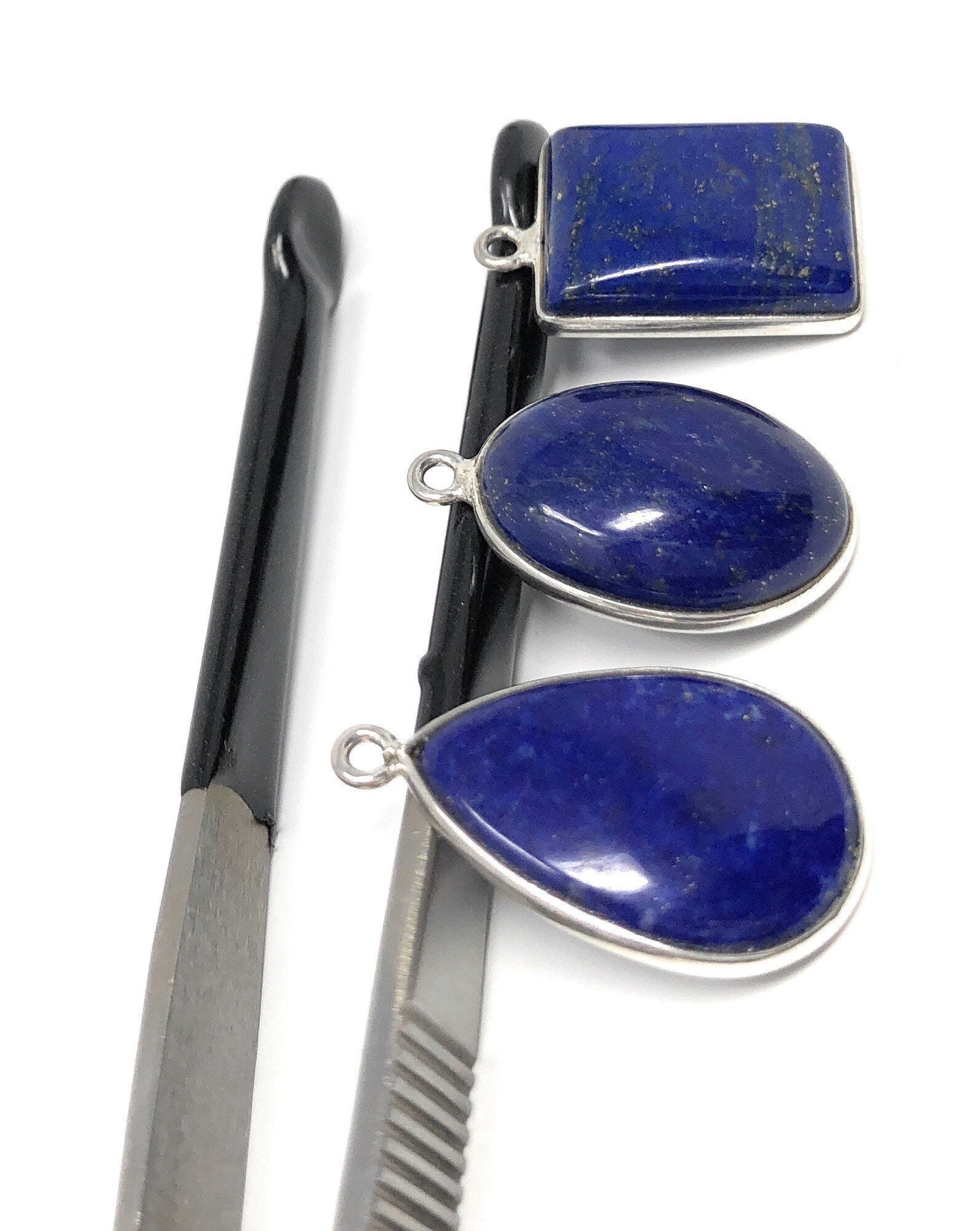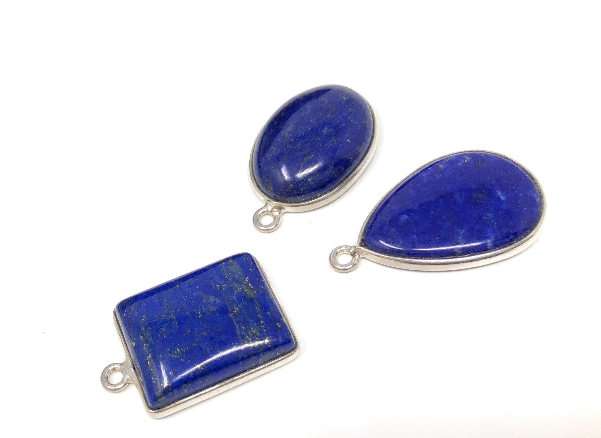 This Beautiful Bulk lot of 3 Pieces of Handmade 925 Sterling Silver Oval, Drop and Rectangle Shape Natural Smooth Polished Lapis Lazuli Gemstone Charms is an excellent choice for making any Jewelry Design. These can be used for making Charm Bracelet, Pendant Necklace or can be used to make any creative Jewelry Design.