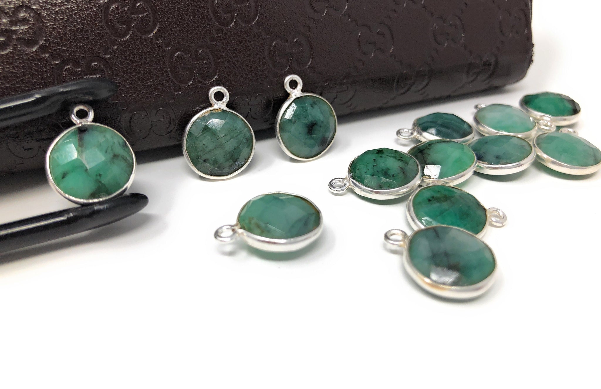 These beautiful Sterling Silver Double Sided Bezel Set Faceted Sakota Emerald Charms are handmade and can be used used for making any creative Jewelry Piece.