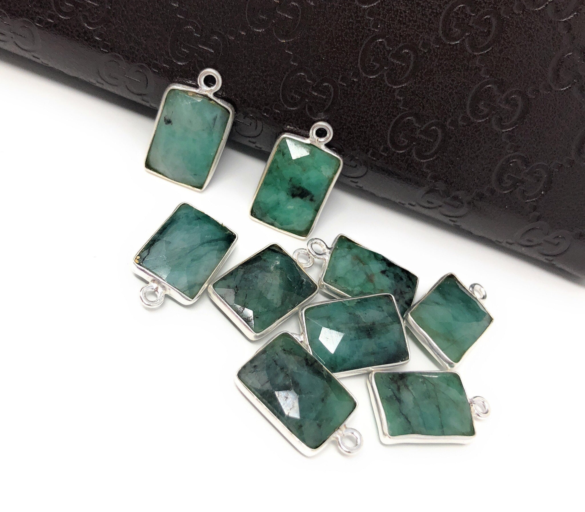 These beautiful Sterling Silver Double Sided Bezel Set Faceted Sakota Emerald Charms are handmade and can be used used for making any creative Jewelry Piece.