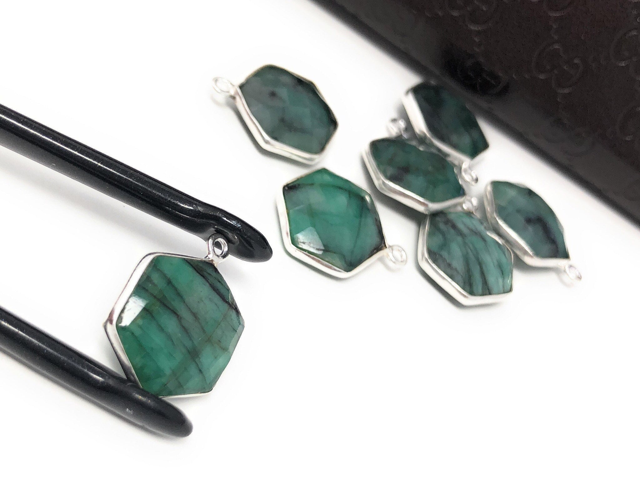 These beautiful Sterling Silver Double Sided Bezel Set Faceted Sakota Emerald Charms are handmade and can be used used for making any creative Jewelry Piece.