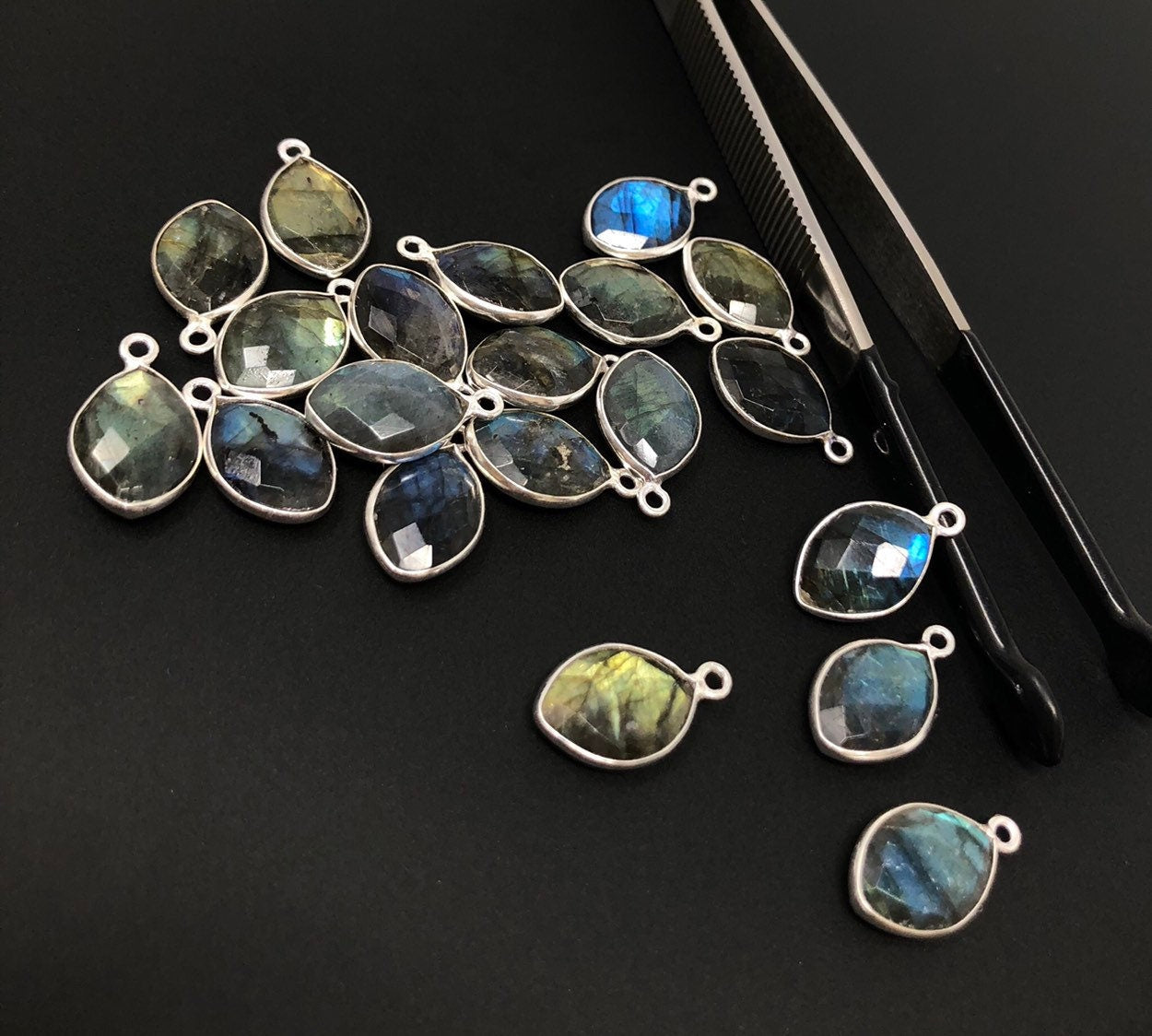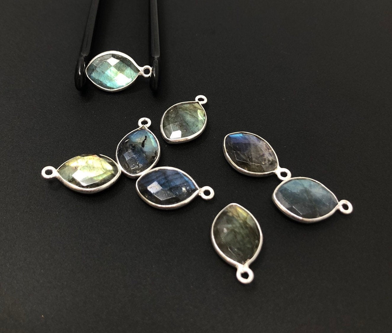 5 Pcs Sterling Silver Labradorite Gemstone Marquise Briolette Charms Jewelry Findings for Jewelry Making at Wholesale Price.