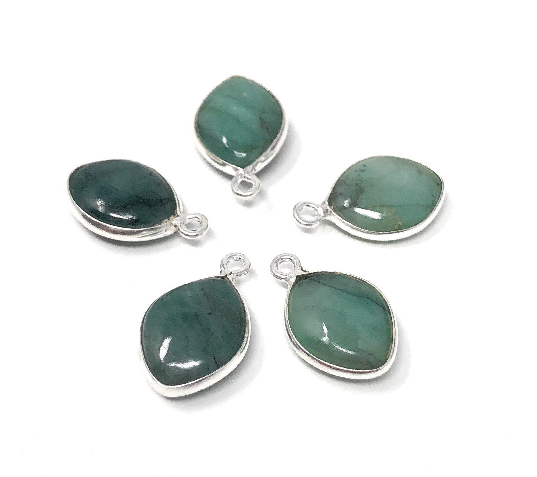 Sterling Silver Gemstone Emerald Charms Bezel Set Add a Charm Jewelry Supplies for Jewelry Making at Wholesale Price.