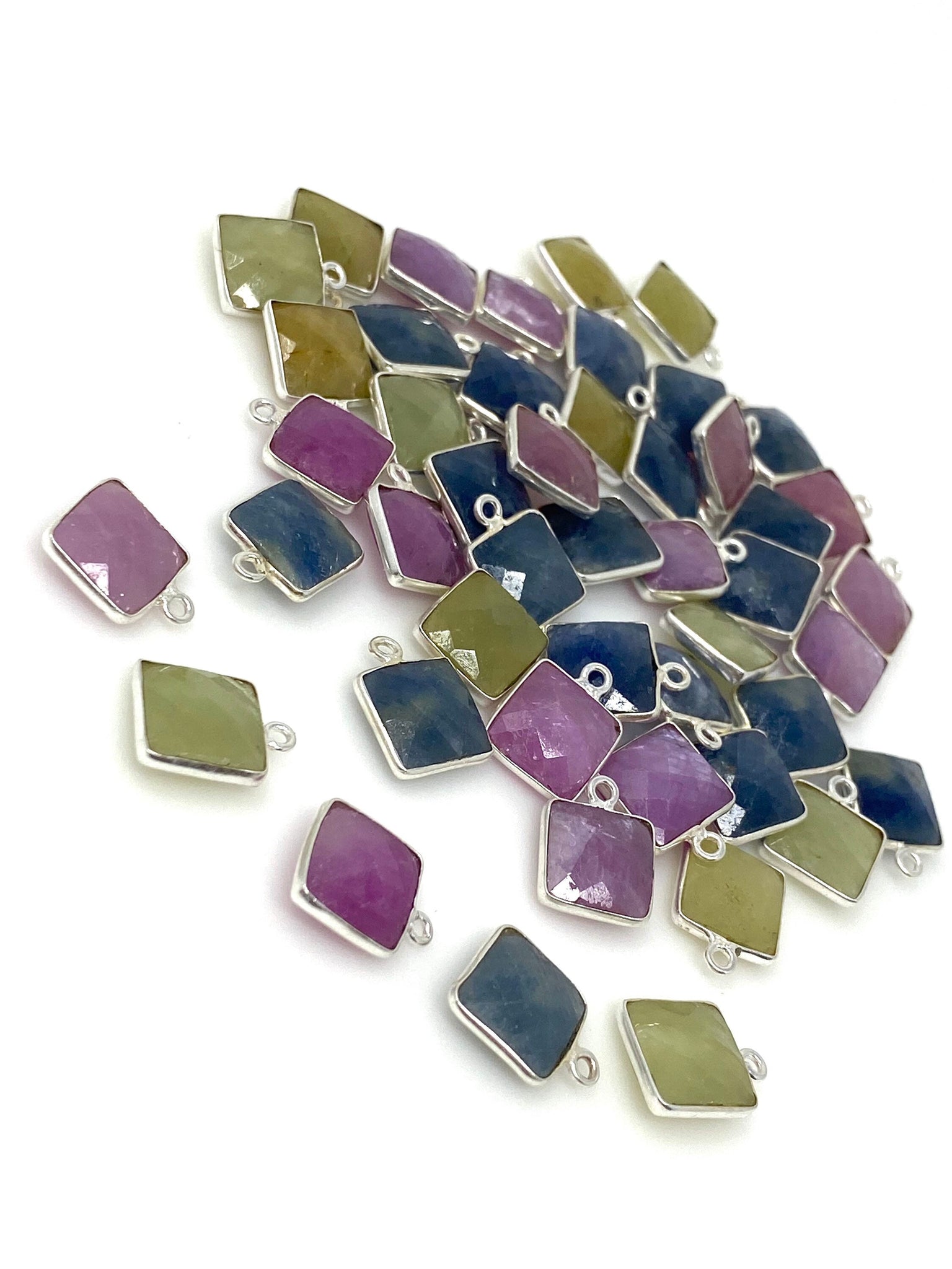 These Beautiful 925 Sterling Silver Natural Genuine Untreated Faceted Sapphire Briolette Charms are hand cut and are bezel set in 925 Sterling Silver.