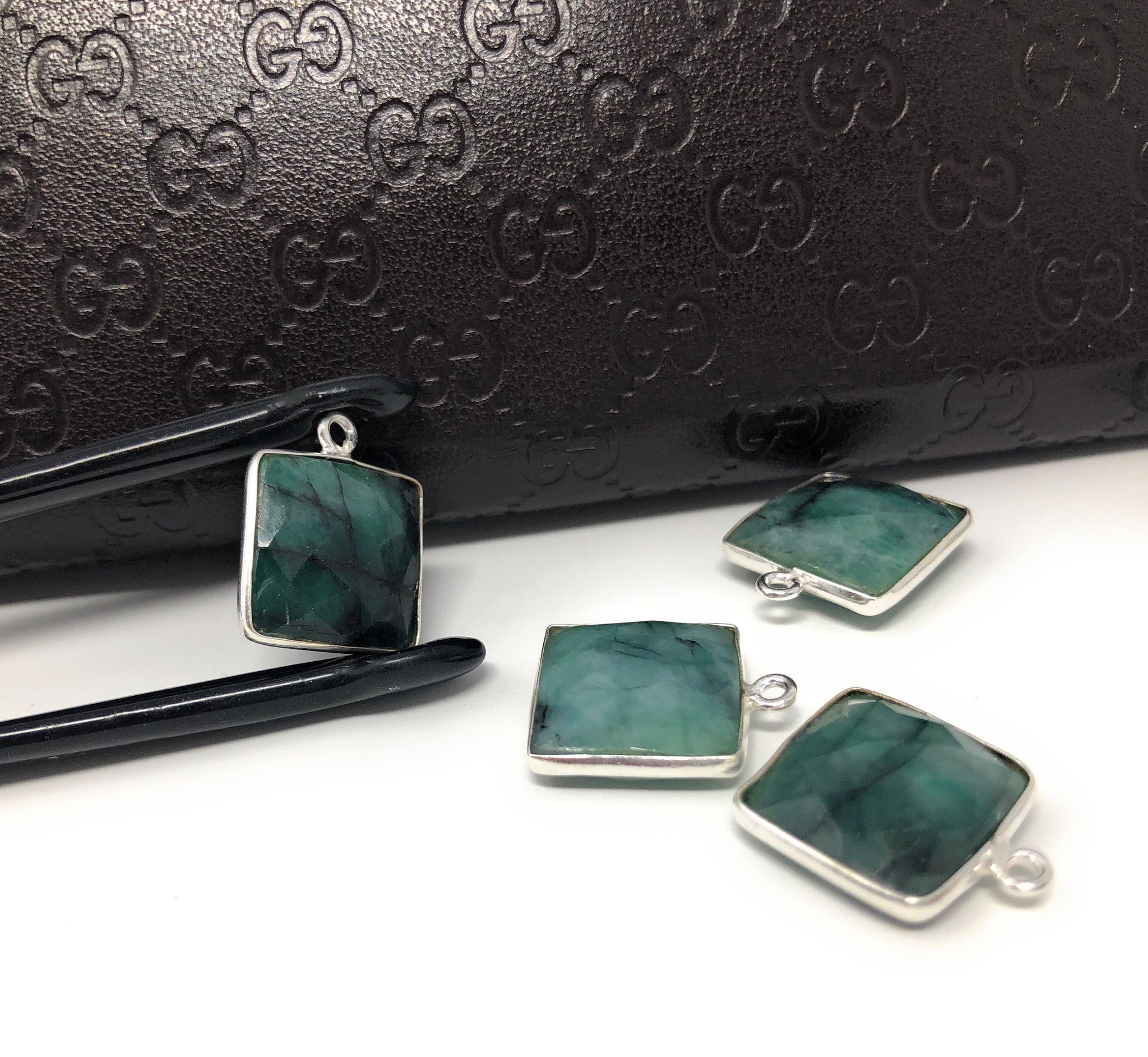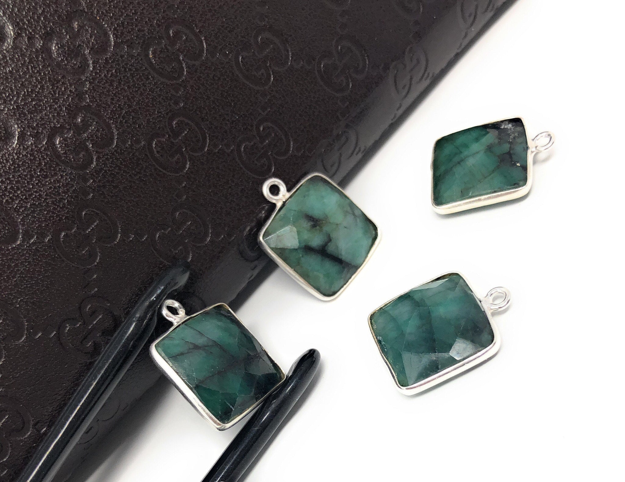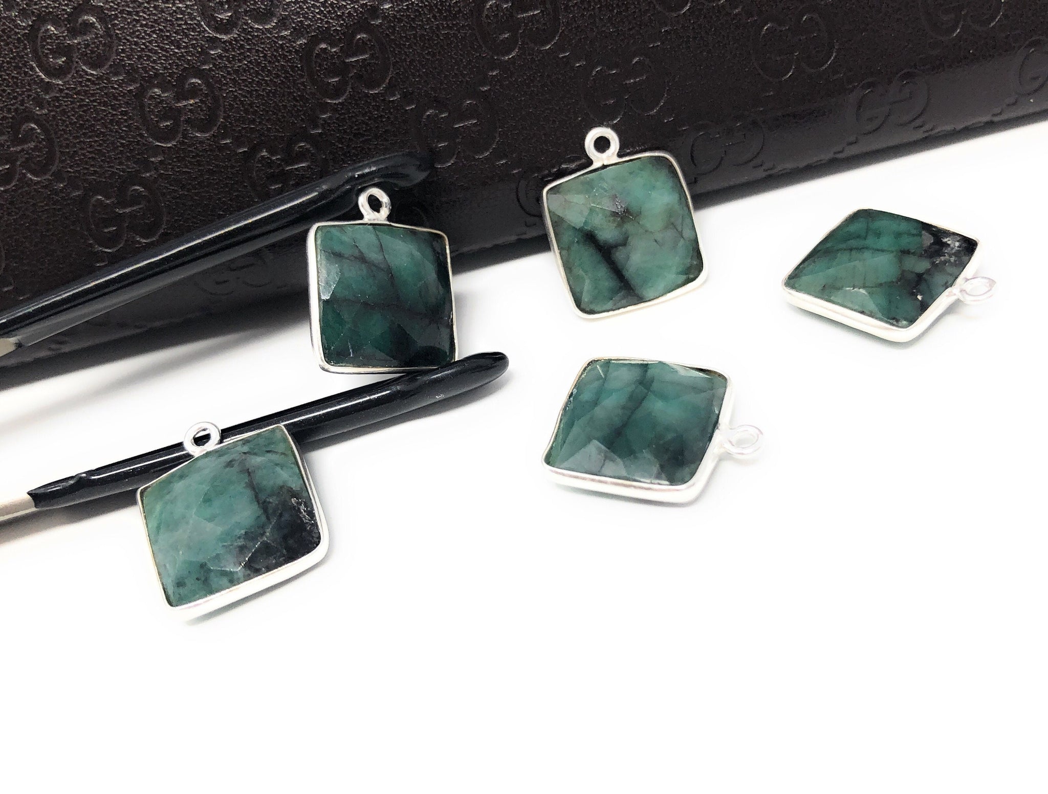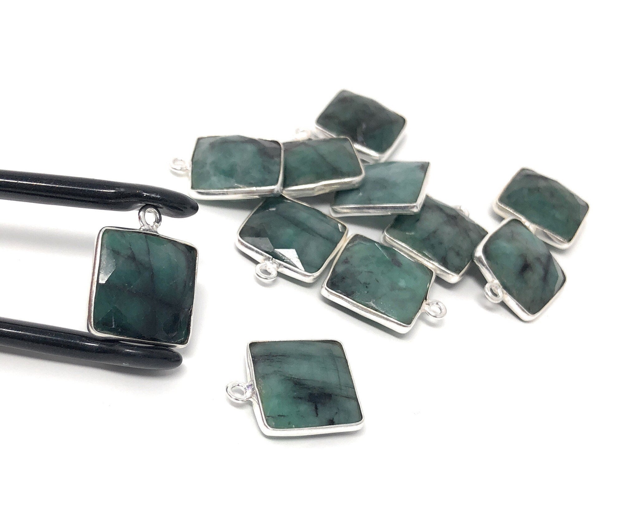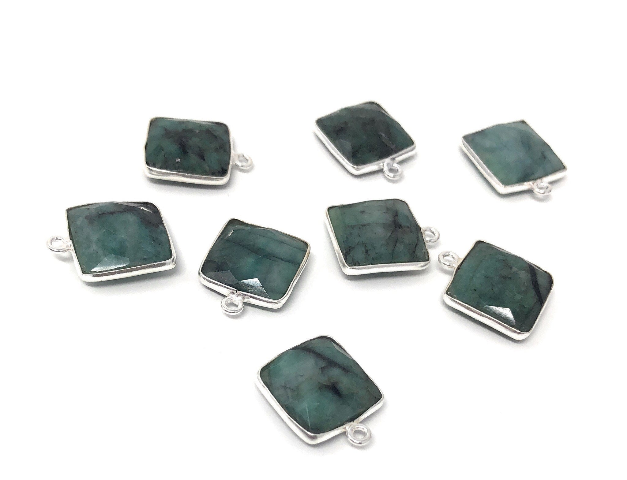 These beautiful Sterling Silver Bezel Set Faceted Sakota Emerald Charms are handmade and can be used used for making any creative Jewelry Piece.
