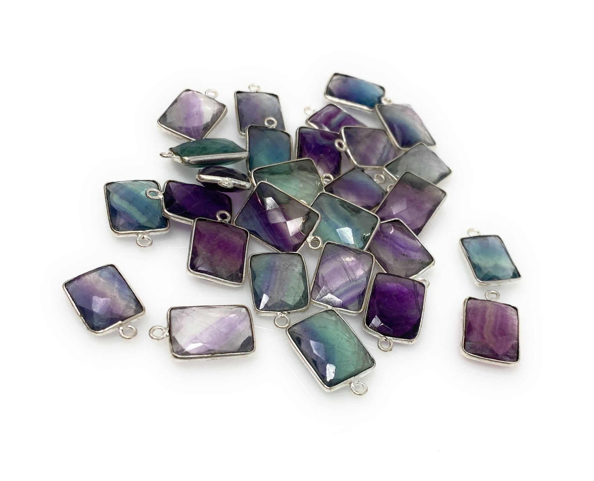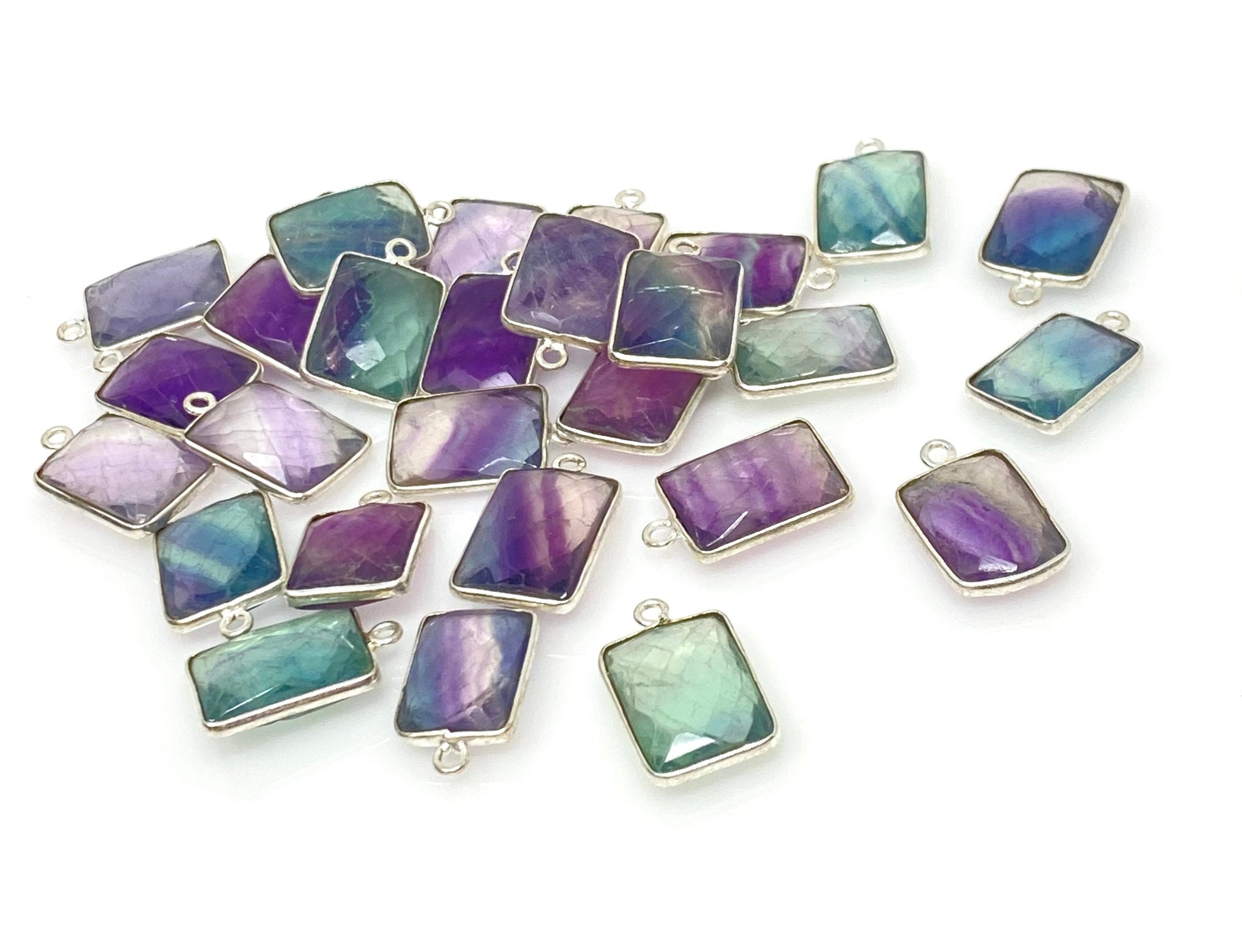 Natural Fluorite Gemstone Silver Plated Charms Bulk Lot Jewelry Supplies for Jewelry Making .