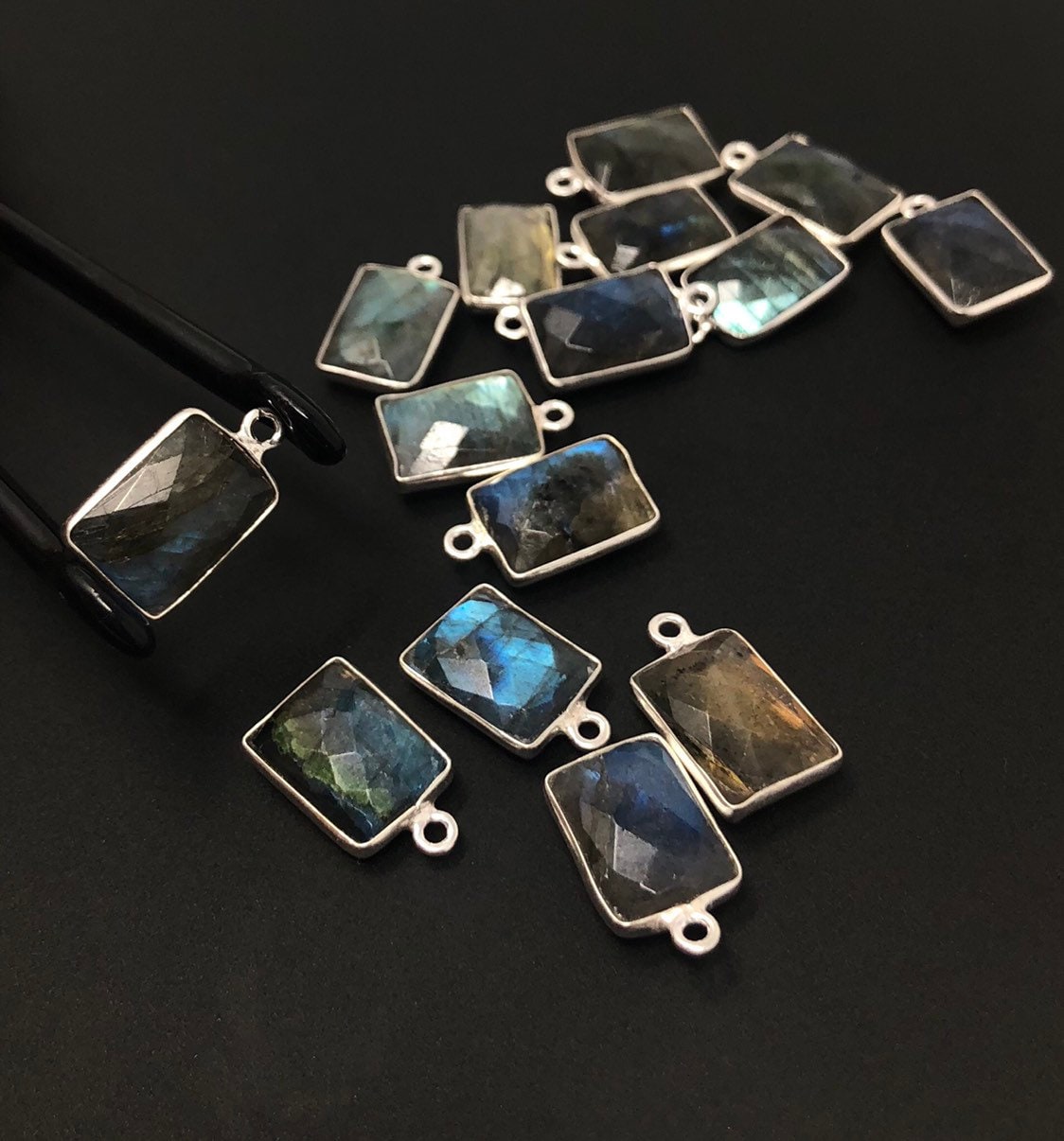 These beautiful Handmade Sterling Silver Natural Gemstone Labradorite Rectangle Shape Charms are an excellent choice for making any Jewelry Design. It can be used for making Anklet, Bracelet, Necklace or can be used for making exclusive Jewelry Piece. It can also be used to make Gemstone Belt.