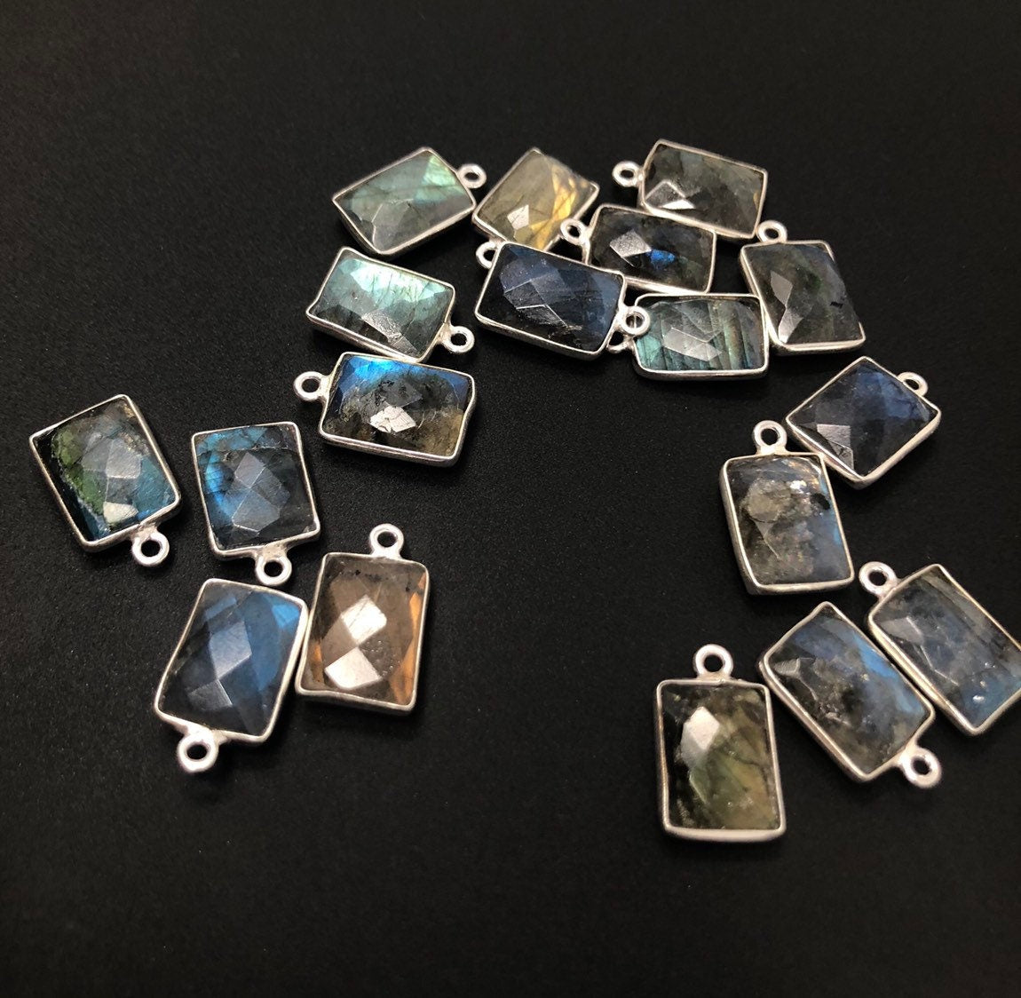 7 Pcs Sterling Silver Labradorite Gemstone Square Briolette Charms Jewelry Findings for Jewelry Making at Wholesale Price.