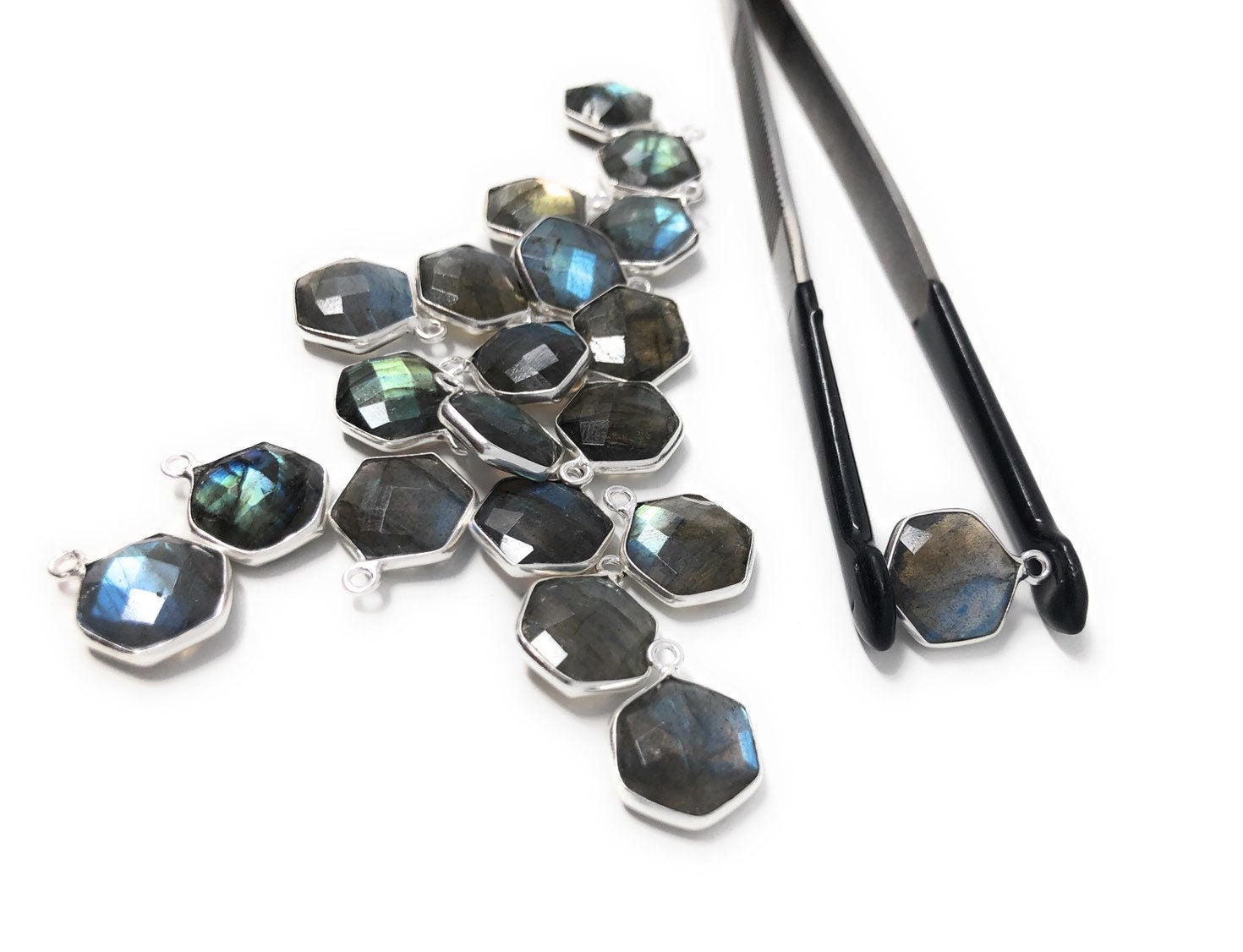 Sterling Silver Labradorite Gemstone Hexagon Briolette Charms Jewelry Findings for Jewelry Making at Wholesale Price.