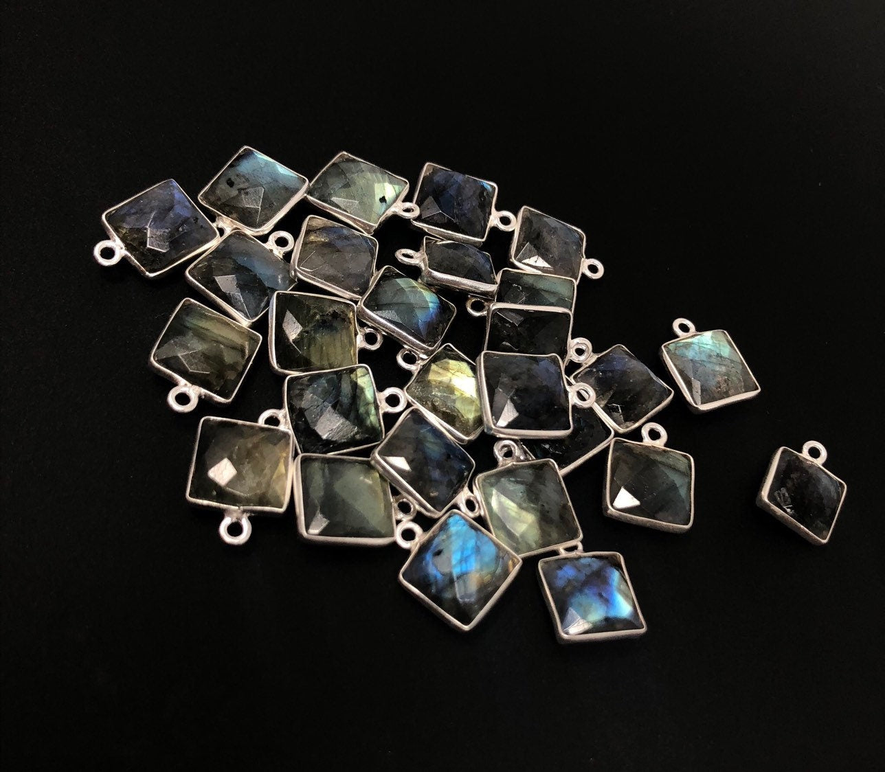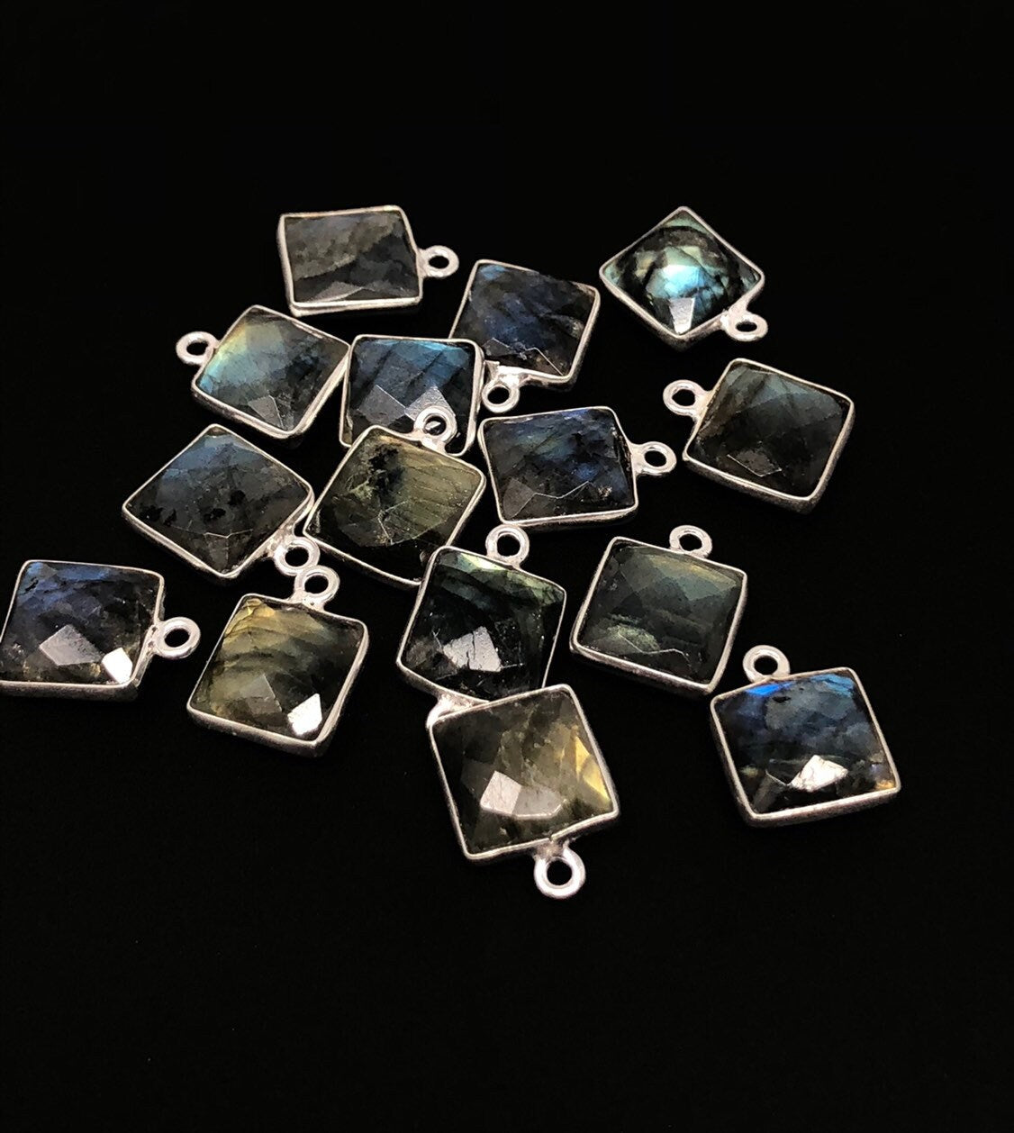 Sterling Silver Labradorite Gemstone Square Briolette Charms Jewelry Findings for Jewelry Making at Wholesale Price.