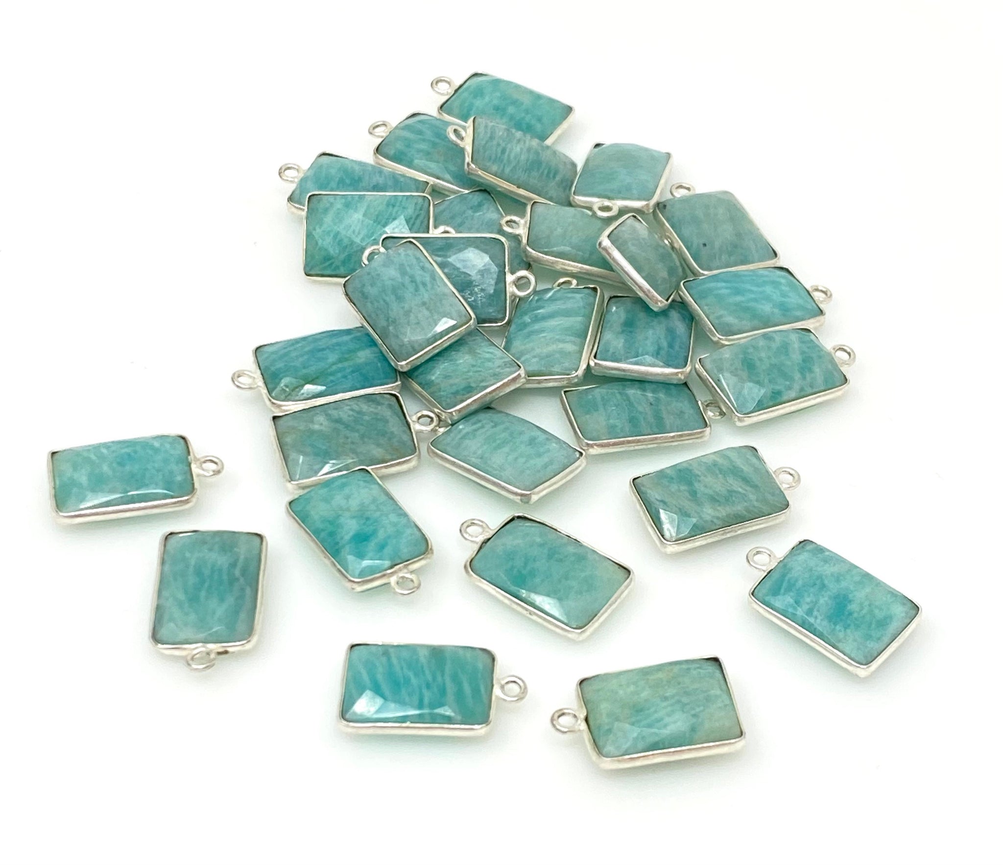 9 Pcs/ 10Pcs Natural Amazonite Gemstone Charms, Silver Plated Charms, Bulk Jewelry Supplies, Wholesale Jewelry Findings