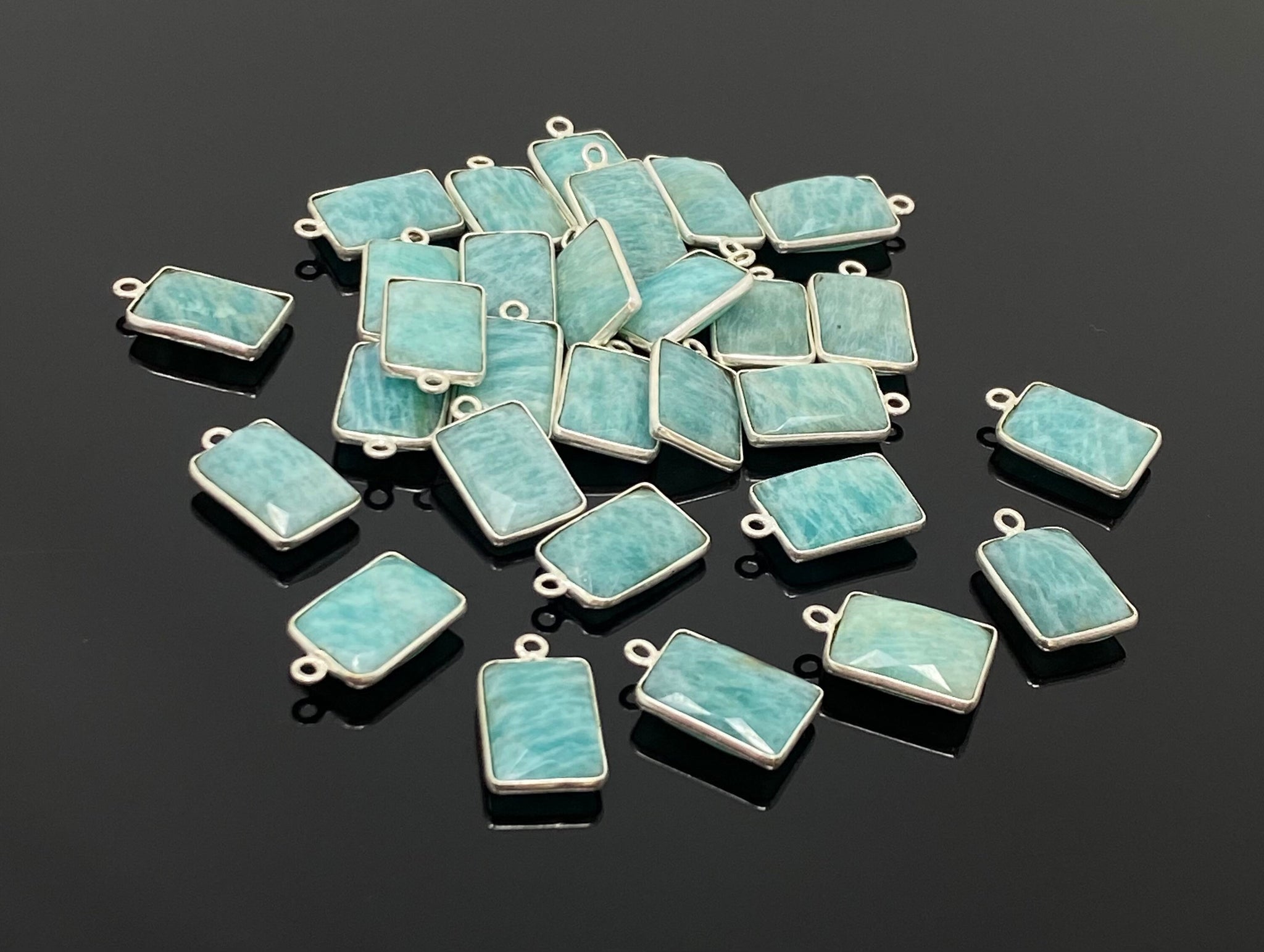 Silver Plated Natural Gemstone Amazonite Bezel Set Double Sided Briolette Charm Jewelry Findings for Jewelry Making at Wholesale Price.
