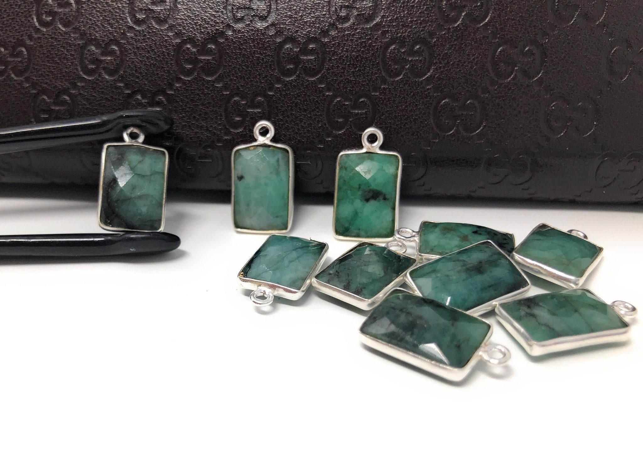 These beautiful Sterling Silver Double Sided Bezel Set Faceted Sakota Emerald Charms are handmade and can be used used for making any creative Jewelry Piece.
