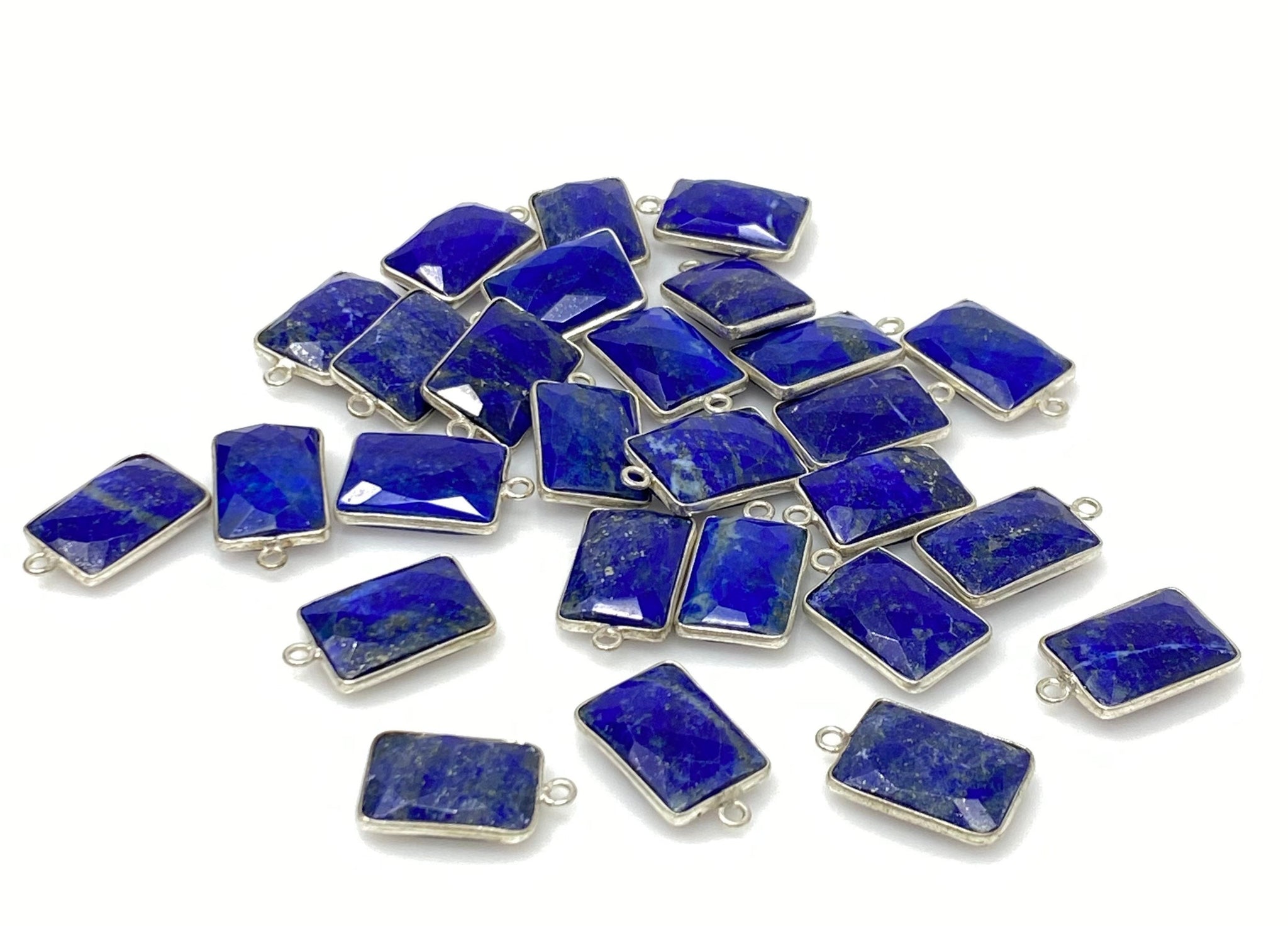 Silver Plated Gemstone Lapis Lazuli Bezel Charms Jewelry Supplies for Jewelry Making.