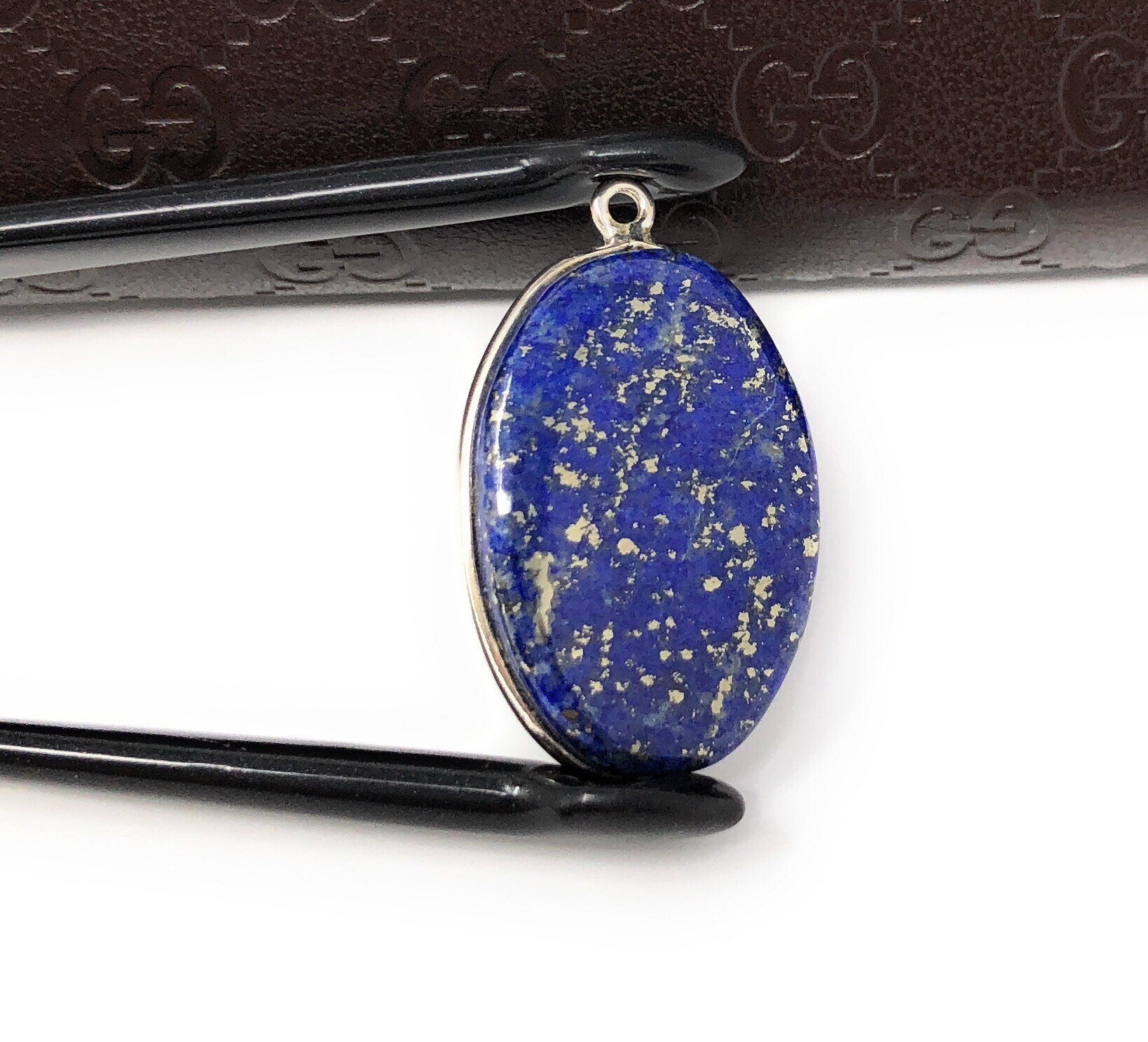 Lapis Lazuli Gemstone Charm, Sterling Silver Charm, DIY Jewelry Making, 29x18x5.5mm