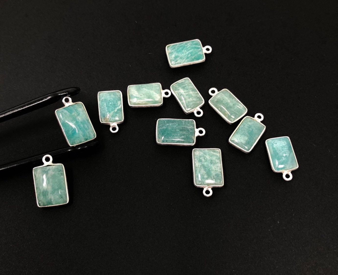 Sterling Silver Natural Gemstone Amazonite Bezel Set Double Sided Briolette Charm Jewelry Findings for Jewelry Making at Wholesale Price.