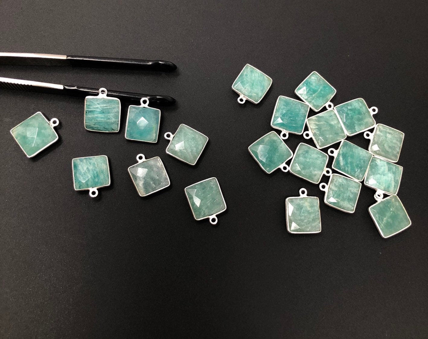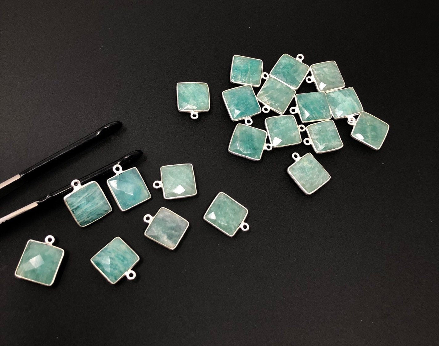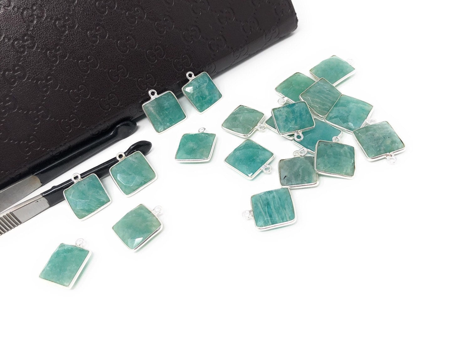 Sterling Silver Natural Gemstone Amazonite Bezel Set Double Sided Briolette Charm Jewelry Findings for Jewelry Making at Wholesale Price.