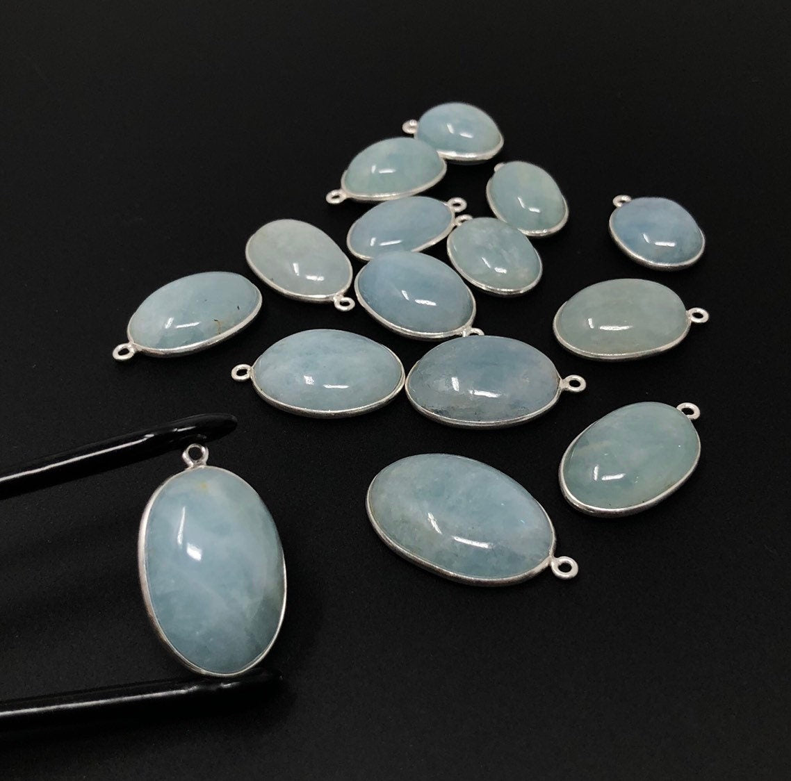 Natural Aquamarine Connectors, Sterling Silver Gemstone Connectors, Jewelry Findings, Jewelry Supplies for Jewelry Making, 1 pc