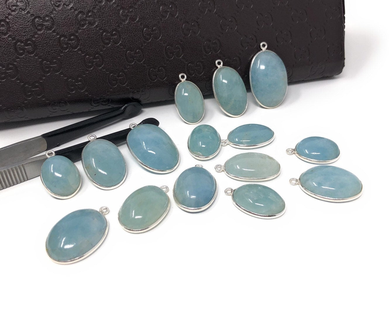 925 Sterling Silver Natural Gemstone Aquamarine Smooth Charms for Jewelry Making at Wholesale Price.