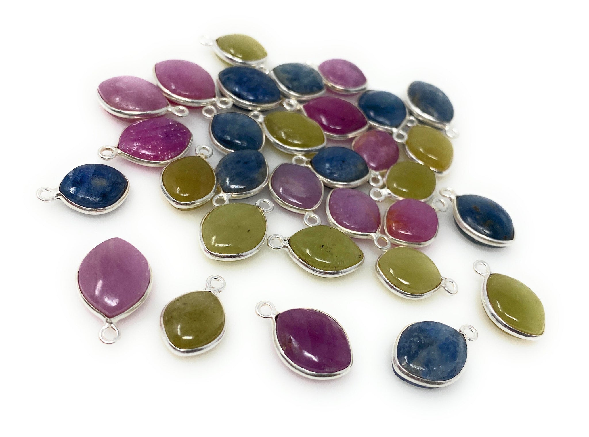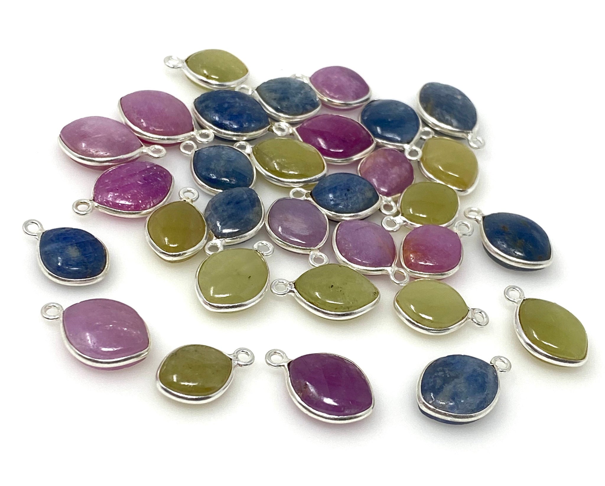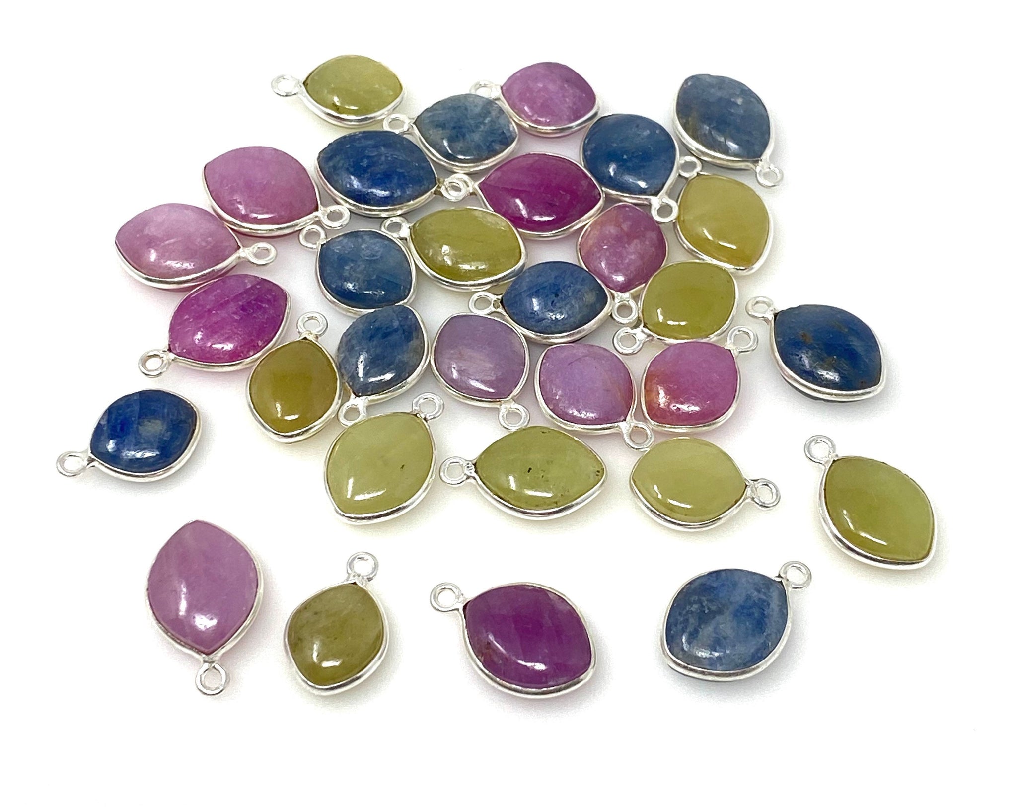 Natural Multi Sapphire Gemstone Charms, Bulk Jewelry Supplies, Wholesale Charms, DIY Jewelry Making, 15x10mm - 18x12mm, 10 Pcs / 11 Pcs