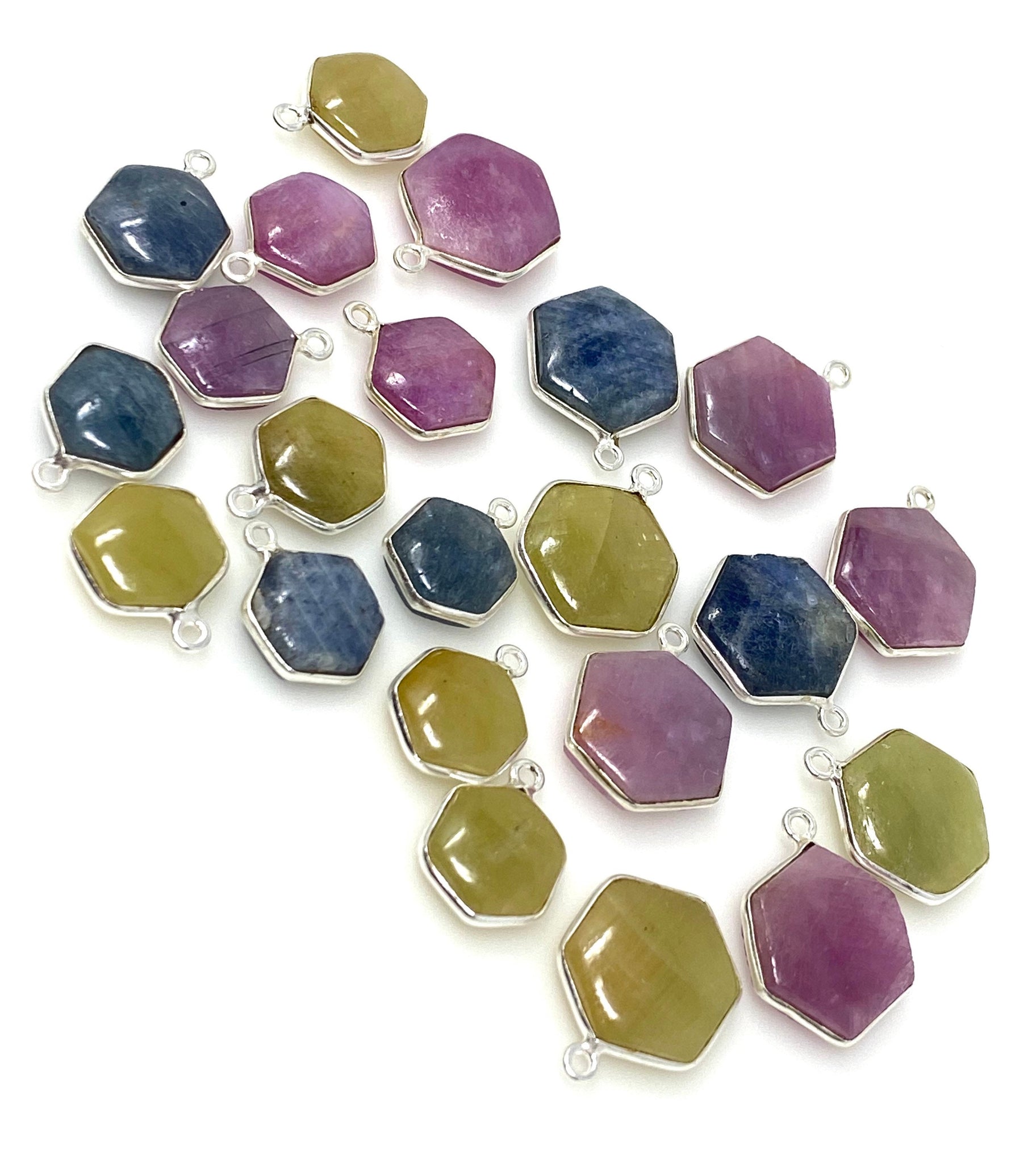 Natural Multi Sapphire Gemstone Charms, Silver Jewelry Supplies, Bulk Wholesale Charms, Yellow Sapphire Blue Sapphire Pink Sapphire , 11 Pcs