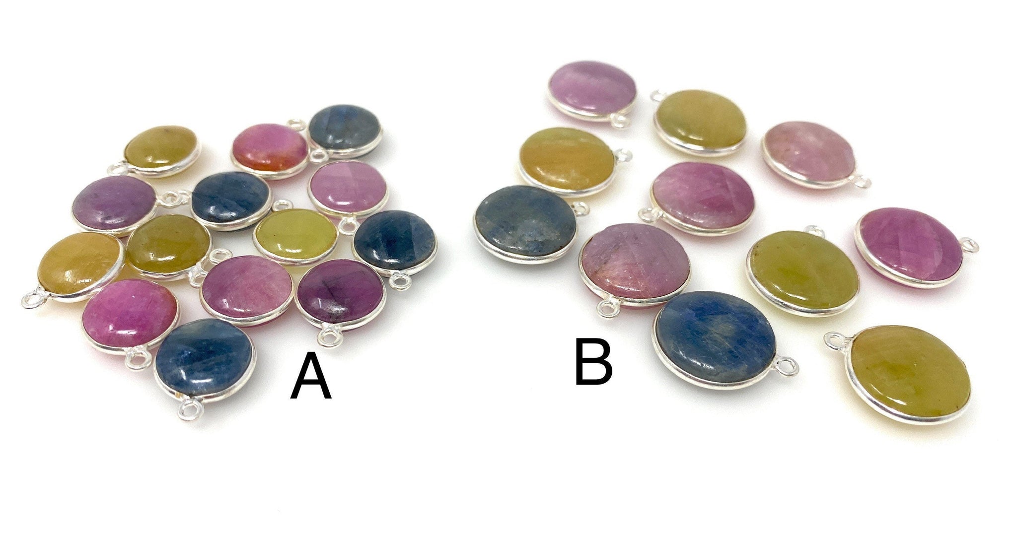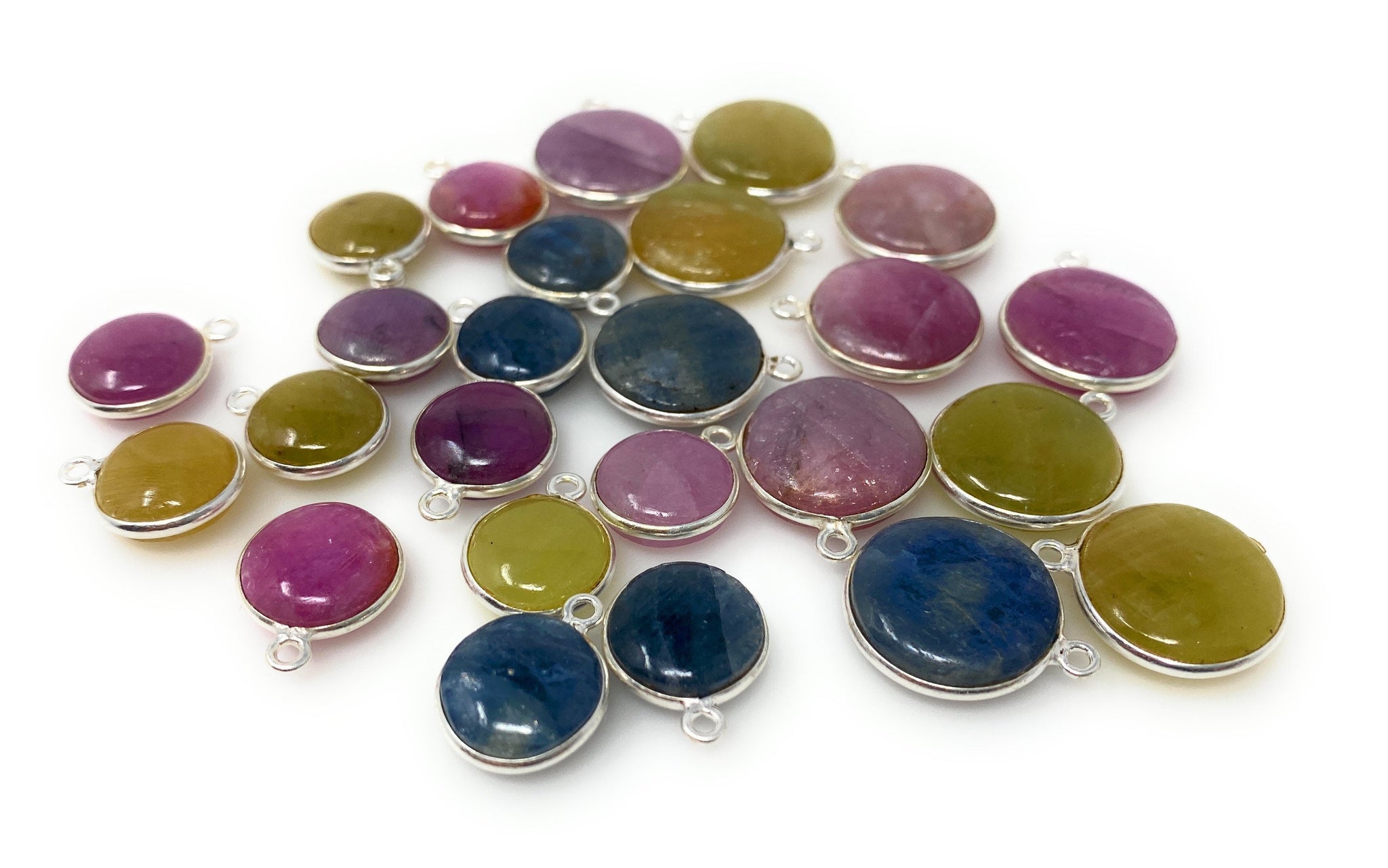 Sapphire Gemstone Charms, Silver Jewelry Supplies, Bulk Wholesale Charms, Yellow Sapphire Pink Sapphire Blue Sapphire 11 Pcs / 14 Pcs