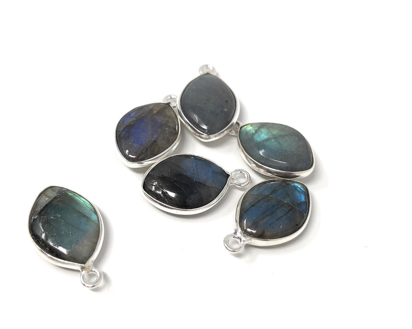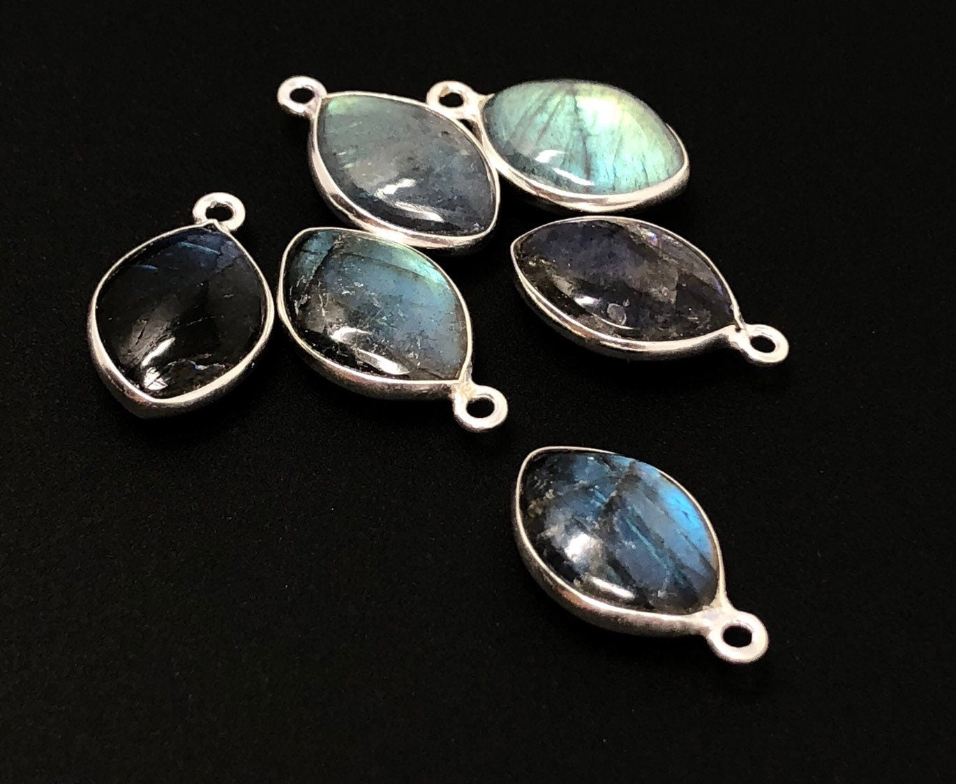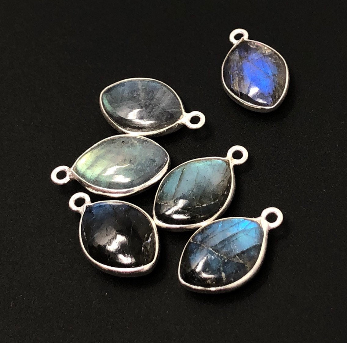 Wholesale 6 Pcs Sterling Silver Labradorite Gemstone Marquise Briolette Charms Jewelry Findings for Jewelry Making.