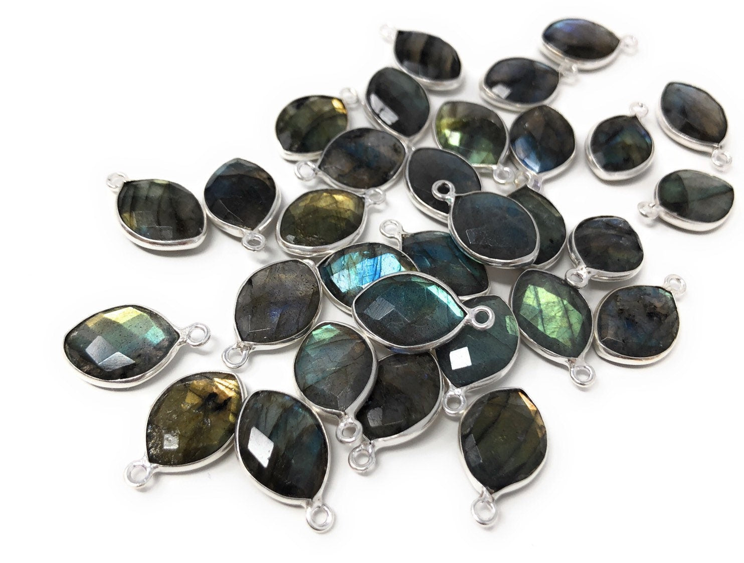 Wholesale Sterling Silver Labradorite Gemstone Marquise Briolette Charms Jewelry Findings for Jewelry Making.